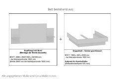 - Bett: Kopfhaupt inklusive 3,8 mm Dopplung und Einhängemontageleiste, Montage der Ablageböden bauseits