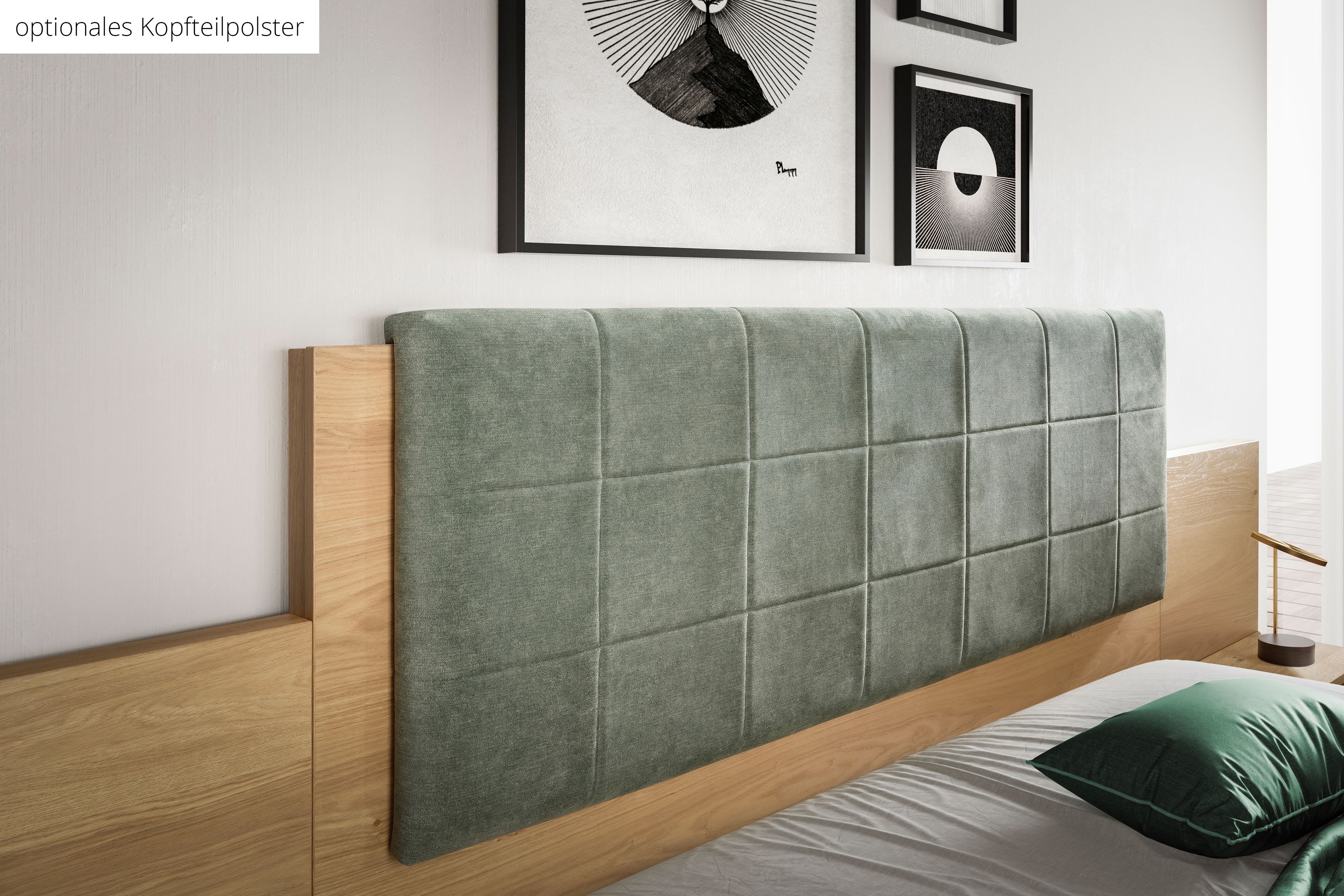 - Bettrahmen/ Kopfteil/ Ablagen: Furnier Wildeiche Samtlack