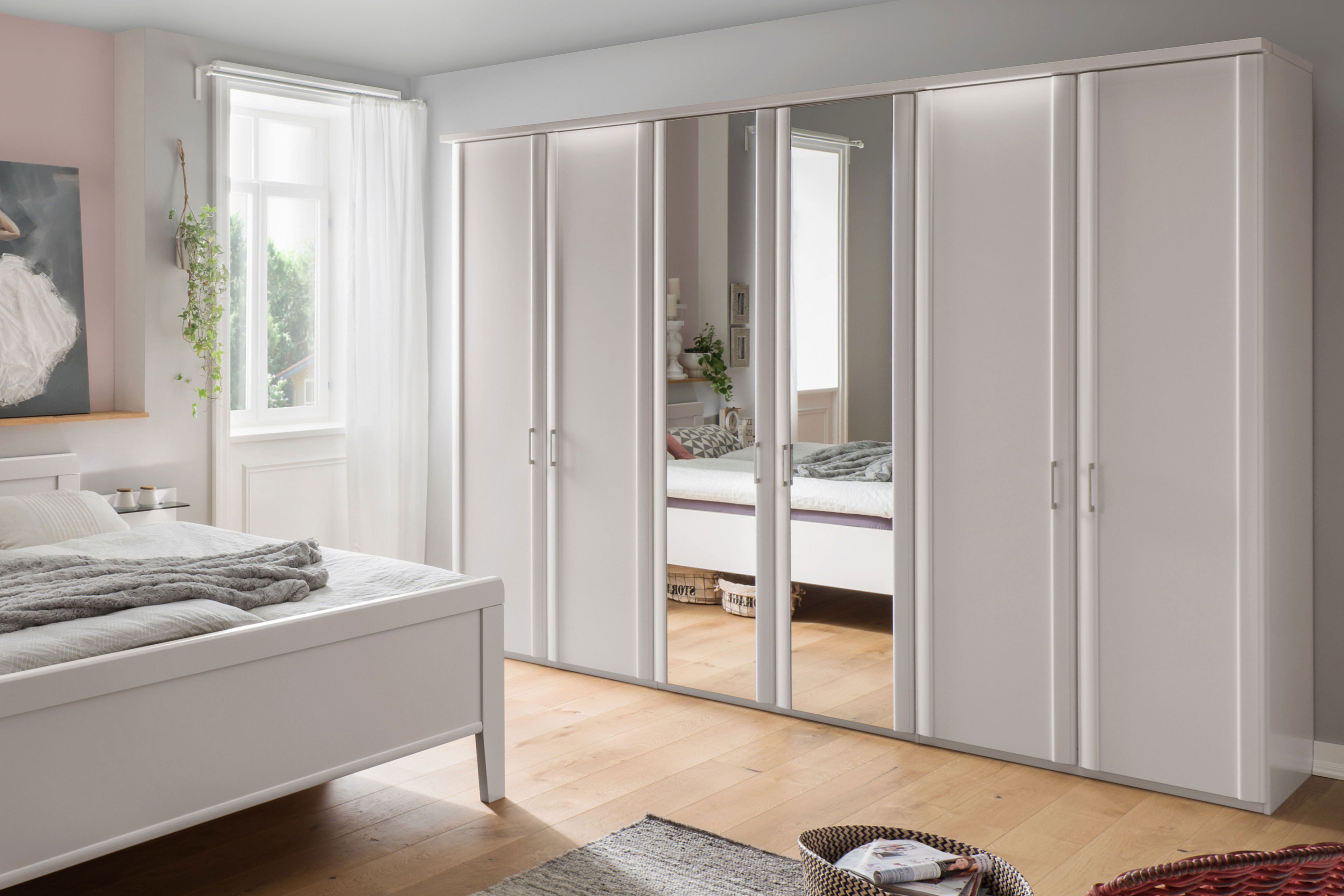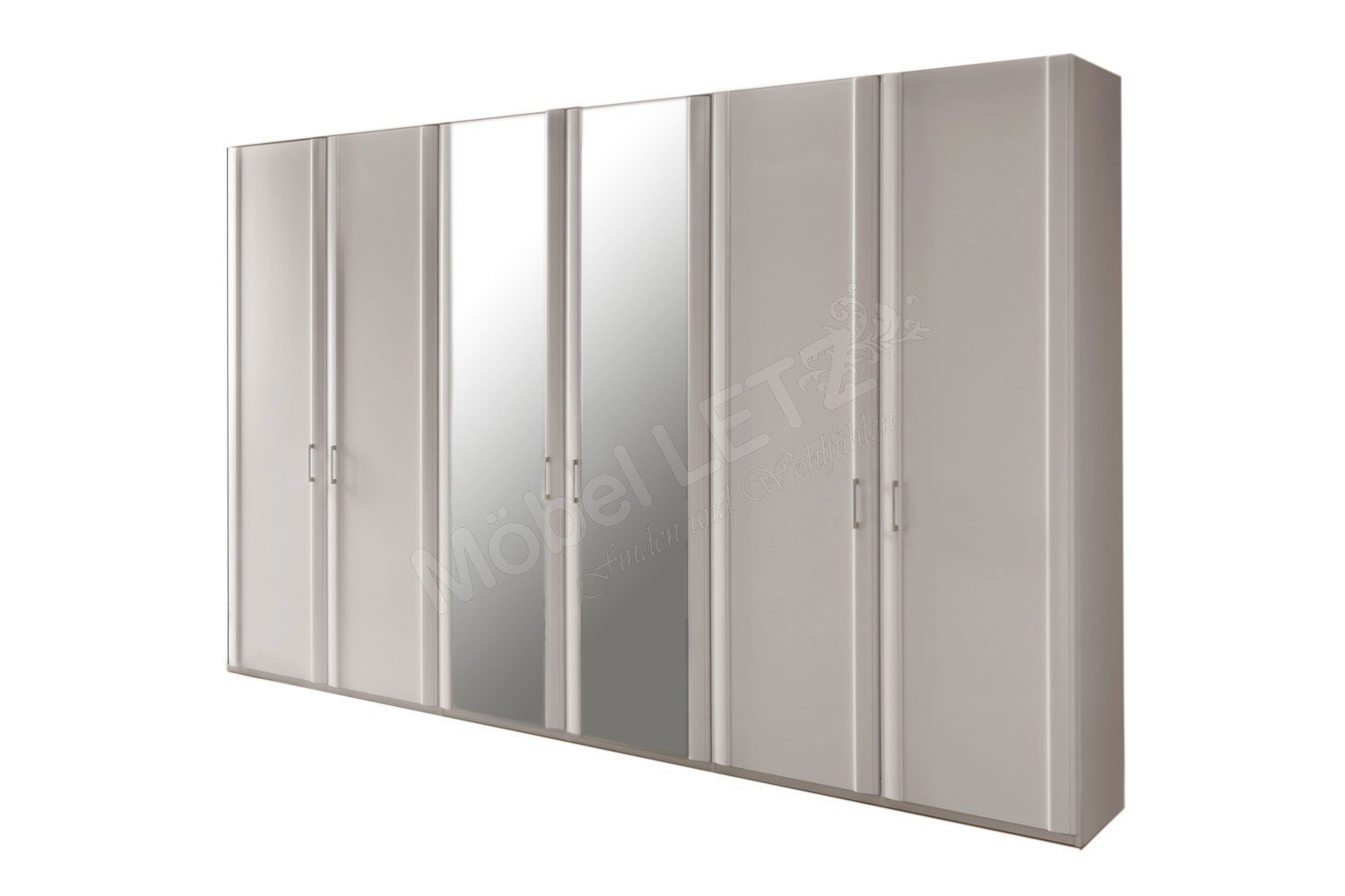 - Schrank: 6-türig, 2 Mitteltüren mit Spiegelauflage