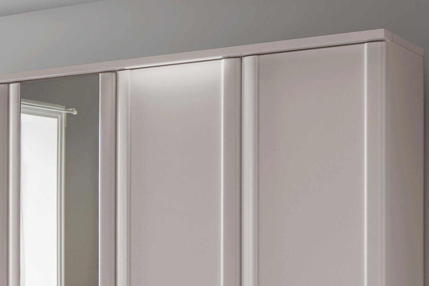 - 1 x 913 - Kranzleiste mit Beleuchtung (2 Linienleuchten), für Schrankbreite ca. 300 cm, BHT ca. 300/3,2/12,5 cm