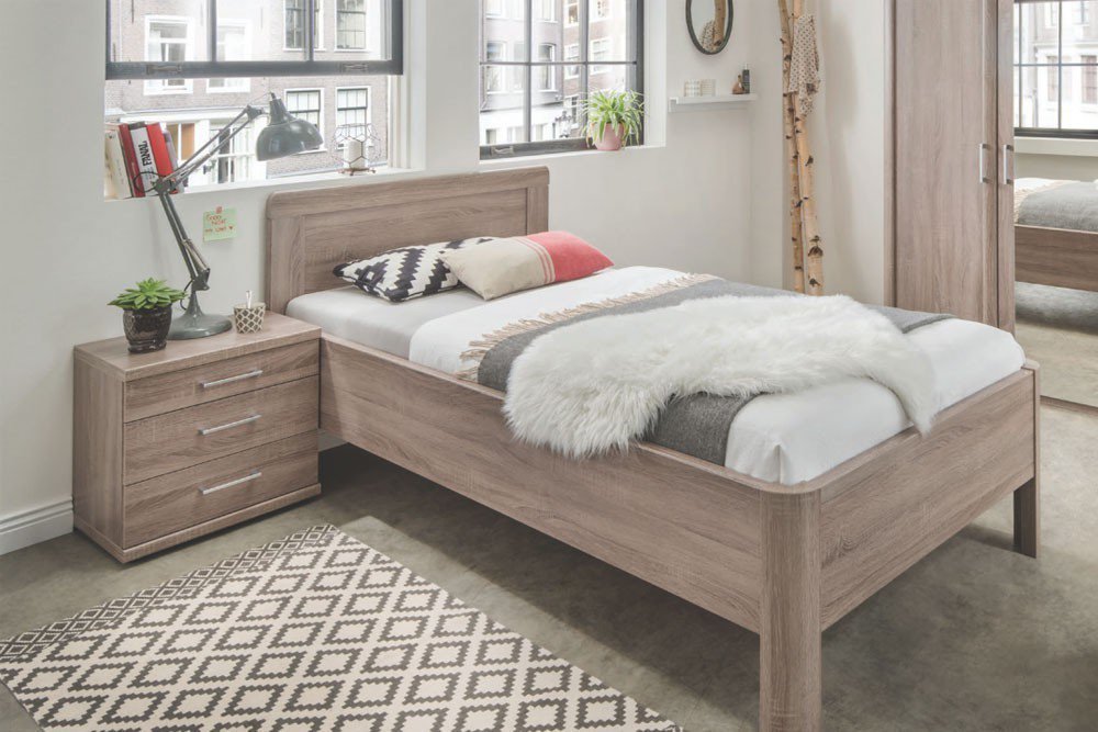 Zeitlos schlicht und doch strahlend schön präsentieren sich die Schlafzimmer-Möbel des Modells Bern von Wiemann. Unser Grundangebot beinhaltet den 3-türigen Kleiderschrank, das Einzelbett mit der Standard-Liegefläche 90 x 200 cm und einen kompakten Nachtschrank, der etwa 50 cm breit ist. Nutzen Sie die Zusatzoptionen, um das Schlafzimmer-Set direkt hier im Artikel zu verändern und an Ihre individuellen Wünsche, bezüglich Ausführung, Größe und Ausstattung, anzupassen, falls Sie beispielsweise eine großzügigere Liegefläche für Ihr Bett oder eine extra Kommode in Ihrem Schlafraum bevorzugen. Wenn Sie auf der Suche nach einem Bern Doppelbett, das ebenso wie das Einzelbett mit einer komfortablen Bettseitenhöhe von ca. 48 cm ausgestattet ist, sind oder einen Schlafraum für Zwei einrichten möchten, dann empfehlen wir Ihnen, einen Blick in den zugehörigen Möbel-Konfigurator zu werfen, der sich direkt unter den Artikelbildern befindet. Der Möbelplaner offenbart Ihnen das komplette Repertoire an Schlafzimmermöbeln des Modells Bern von Wiemann, sodass Sie sich problemlos auch eine alternative Einrichtung zusammenstellen können.