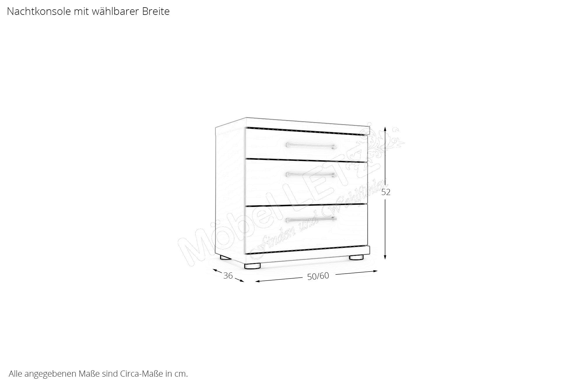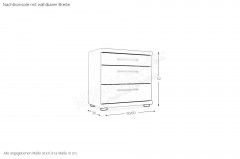 - Nachtschrank: mit 3 Auszügen, oberer Auszug schmal