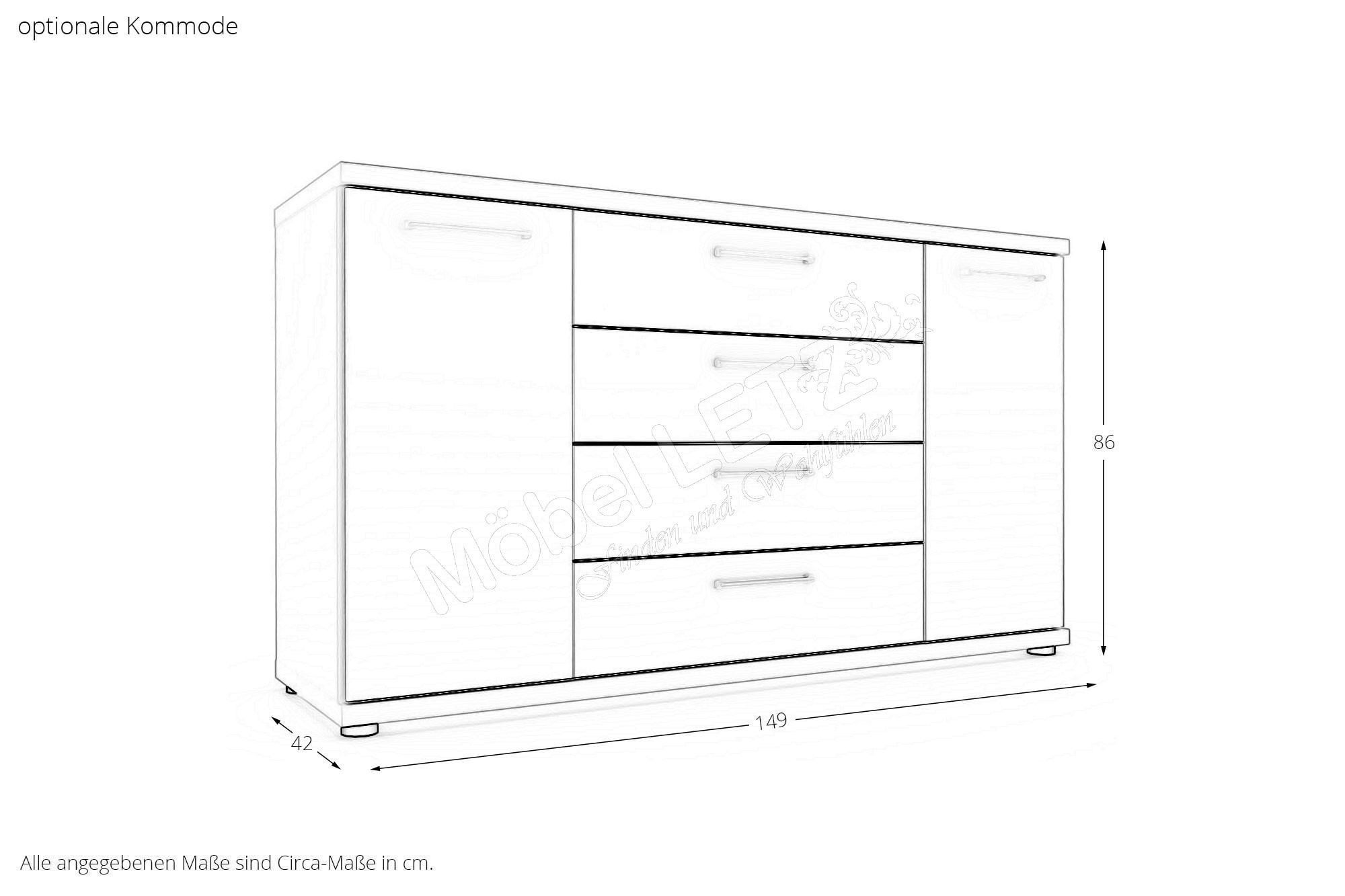 - Schrank: 3-türig, Mitteltür mit Spiegelauflage