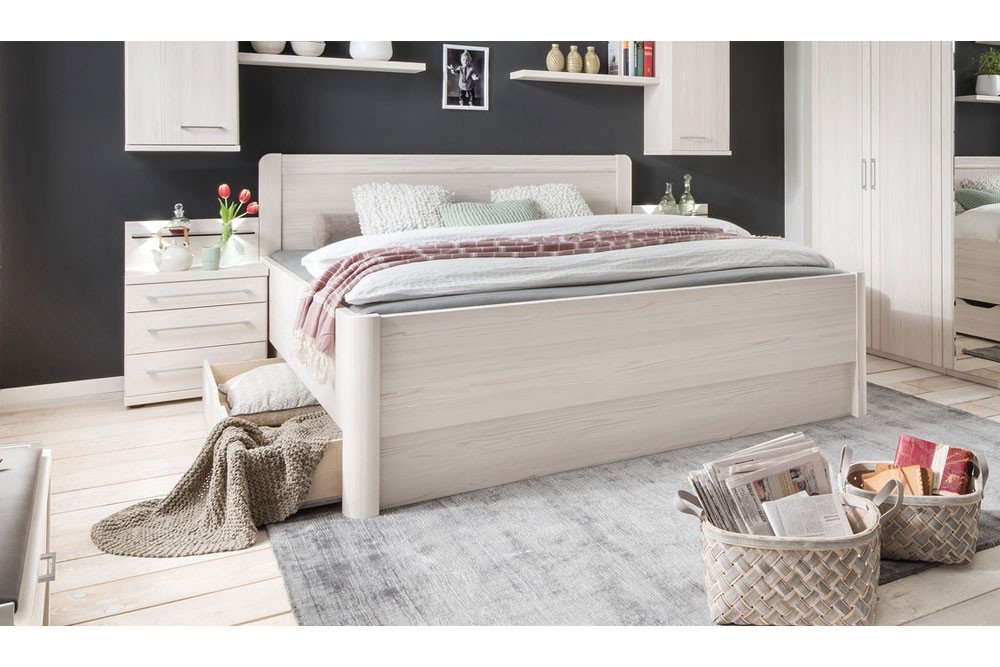 Sie legen großen Wert auf Komfort und Funktionalität in Ihrem Schlafzimmer und wünschen sich klassisch zeitlose Möbel mit einem modern angehauchten Design? Dann wird Sie das Modell Mainau aus dem Hause Wiemann mit seinem Konzept begeistern. Der Typenplan hält eine Vielzahl an komfortablen Betten und praktischen Stauraum-Lösungen für Ihr neues Schlafzimmer bereit. Alle Möbel schmücken sich mit einer freundlichen Polar-Lärche-Holz-Nachbildung, die mit ihrem frischen Look für ein vitalisierendes Ambiente in Ihrem Schlafraum sorgt. Die Grundauswahl unseres Angebots beinhaltet einen geräumigen Drehtürenschrank, ein Doppelbett sowie zwei kompakte Nachtschränke. Unter anderem punkten die Beimöbel mit leichtgängigen Schubkästen sowie leise öffnenden sowie schließenden Schranktüren und das Bett überzeugt mit einer geradezu luxuriösen Bettseitenhöhe von ca. 53 cm. Zusätzlich können Sie das 4-teilige Möbel-Set beispielsweise mit vorteilhaften Bettkästen, dekorativen Beleuchtungselementen, Hängeschränken und Wandregalen ergänzen. Mainau von Wiemann - Klassik zum Wohlfühlen.