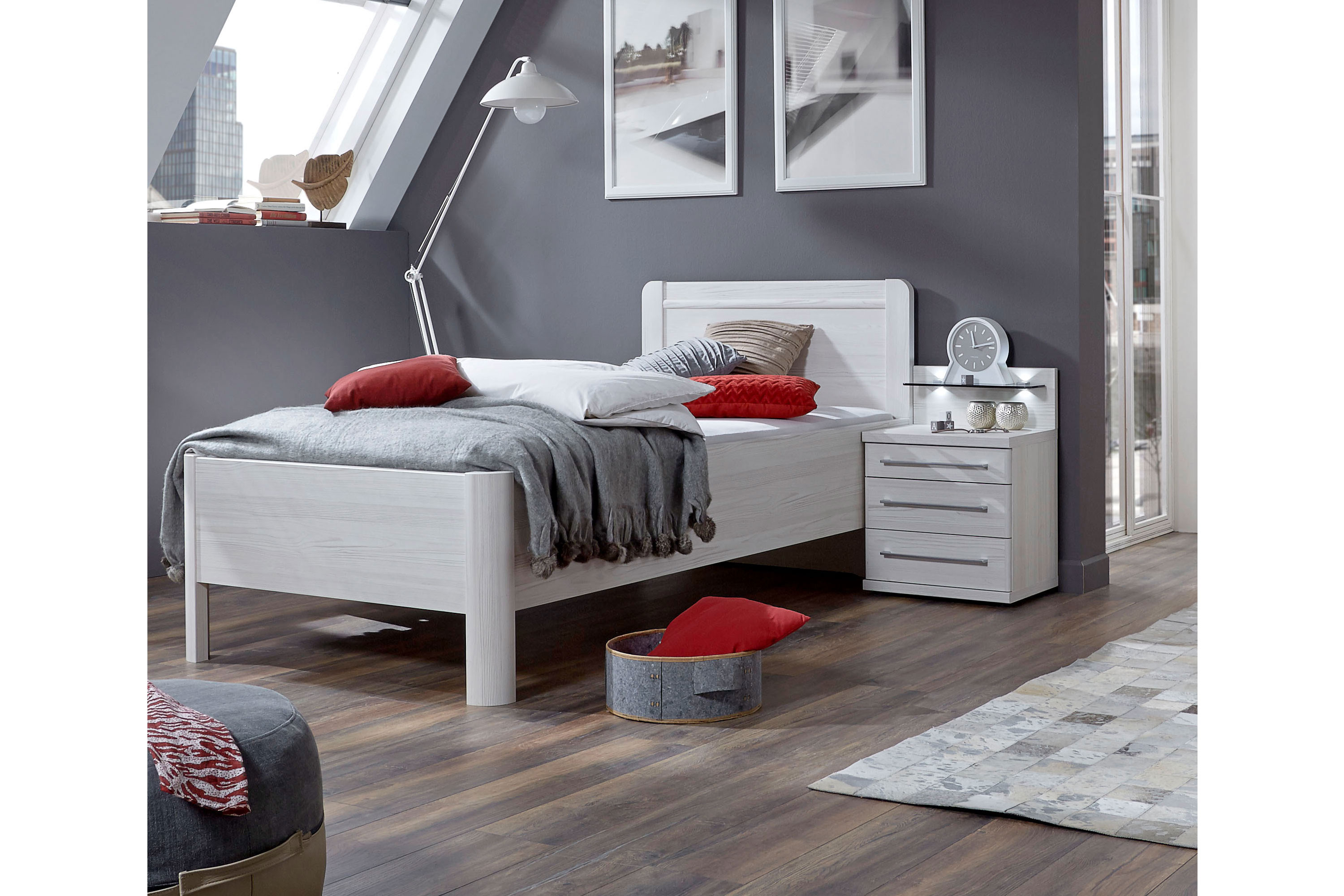 Gestalten Sie Ihr neues Schlafzimmer so angenehm wie möglich, mit den Möbeln des Modells Mainau aus dem Hause Wiemann. Besonders entspannungsfördernd wirkt sich die klassische Holzstruktur der modernen Polar-Lärche-Nachbildung aus, da diese ein helles, freundliches Ambiente in Ihren Schlafraum zaubert. Die komfortablen Gegebenheiten, die dieses Möbel-Set mitbringt, garantieren eine seniorengerechte Nutzungsmöglichkeit. Der Bettrahmen des Einzelbettes wartet mit einer geradezu luxuriösen Bettseitenhöhe von ca. 53 cm auf, der sich die Nachtkonsole angleicht. Neben dem Bett und dem Nachtschrank verfügt unser Grundangebot außerdem über einen 3-türigen Kleiderschrank, dessen Türen bereits serienmäßig über Scharniere verfügen, die ein sanftes Öffnen und Schließen ermöglichen. Als optionale Erweiterung stehen Ihnen für den Drehtürenschrank eine Kranzleiste, mit oder ohne Linienleuchte, für das Bett ein Bettkasten inklusive Fußteilverblendung und für die Nachtkonsole ein Nachtschrank-Paneel, ebenfalls mit oder ohne Beleuchtung wählbar, zur Verfügung. Bedarfsgerecht ausgestattet mit vorteilhaften Möbeln - Mainau von Wiemann macht’s möglich.