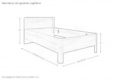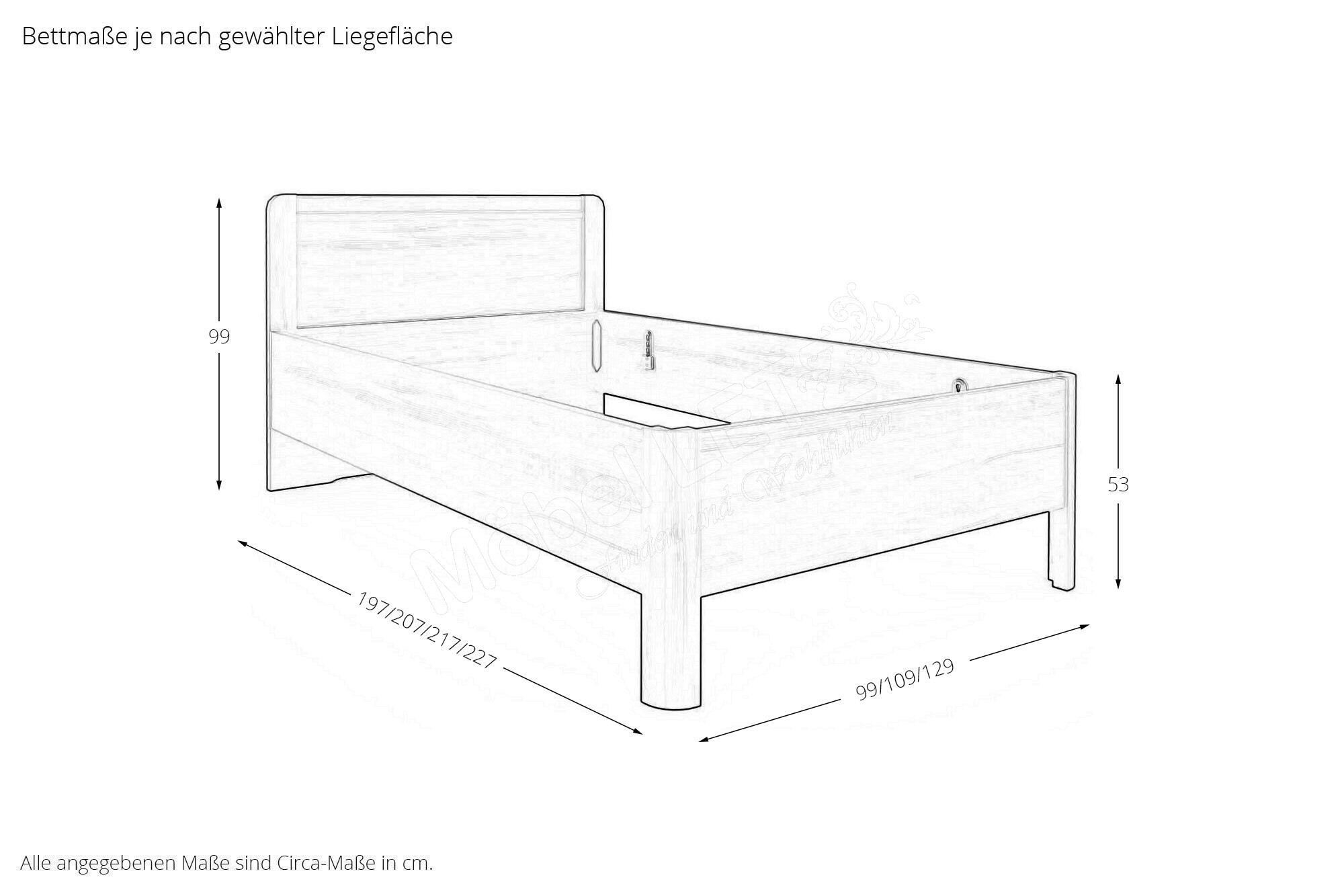 - Bett: Höhe Kopfteil ca. 99 cm, Höhe Fußteil ca. 53 cm, Höhe bis zur Bettseiten-Oberkante ca. 53 cm