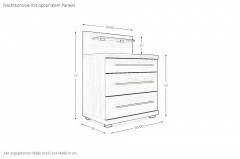 - Nachtkonsole: mit 3 Schubkästen, oberer Schubkasten schmal