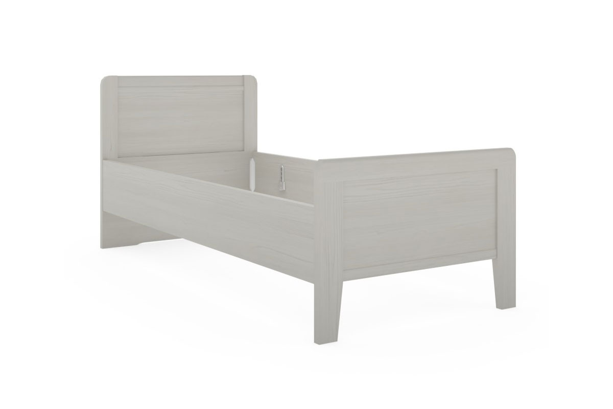- Bett: ohne Lattenrost und Matratze, mit Holz-Kopfteil und hohem Stollenfußteil