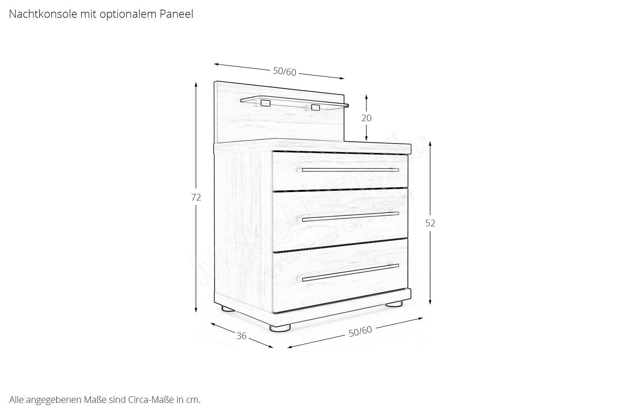 - Nachtkonsole: mit 3 Schubkästen, oberer Schubkasten schmal