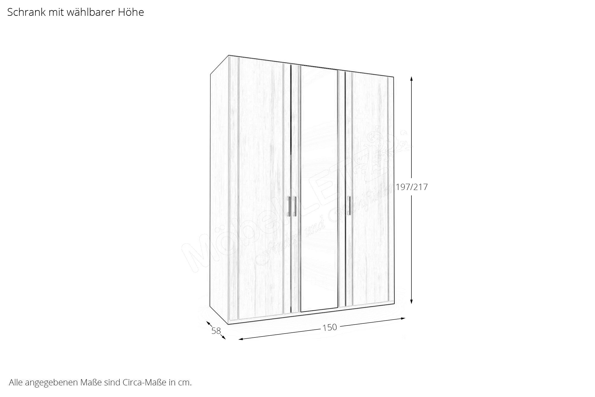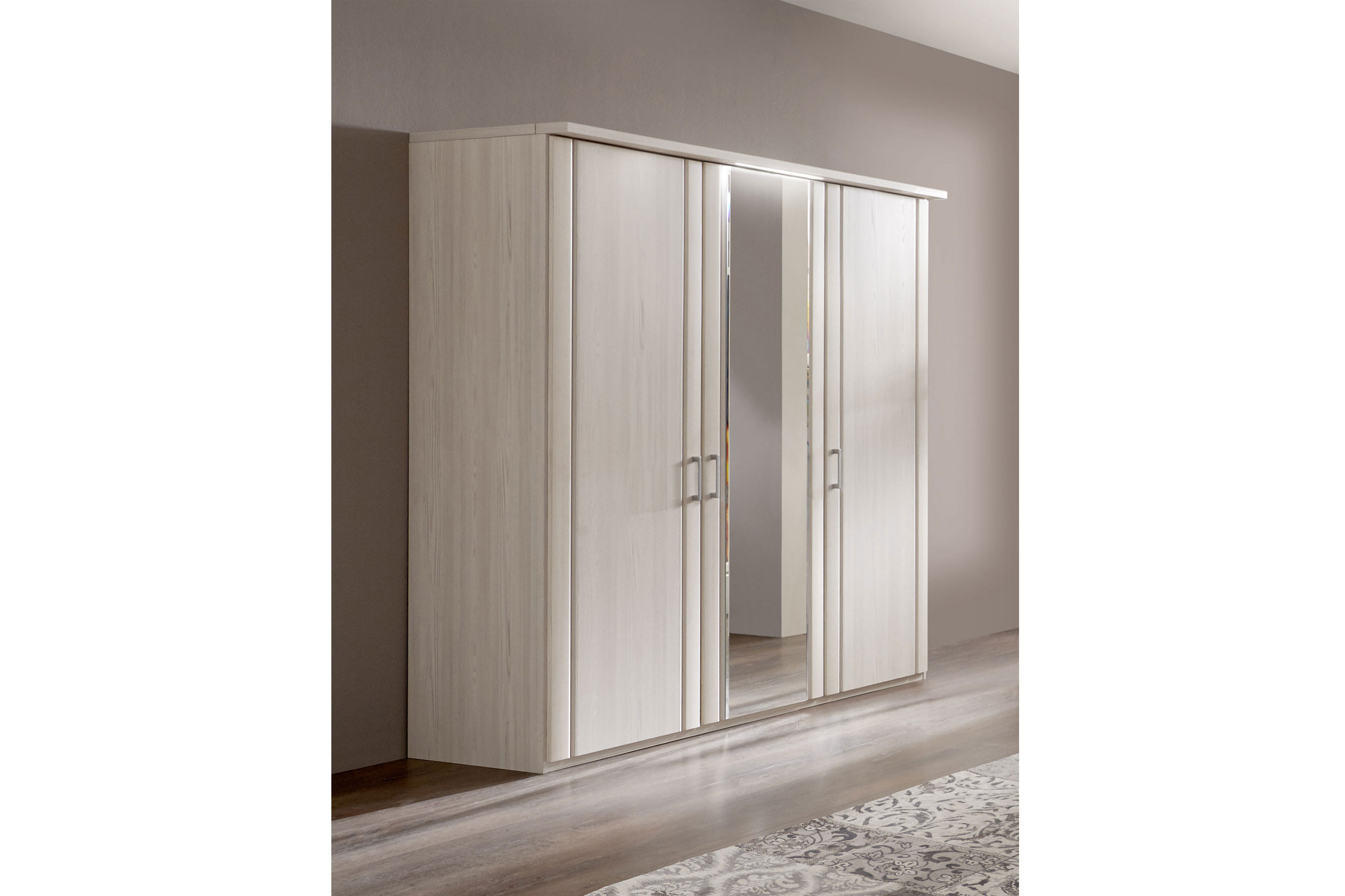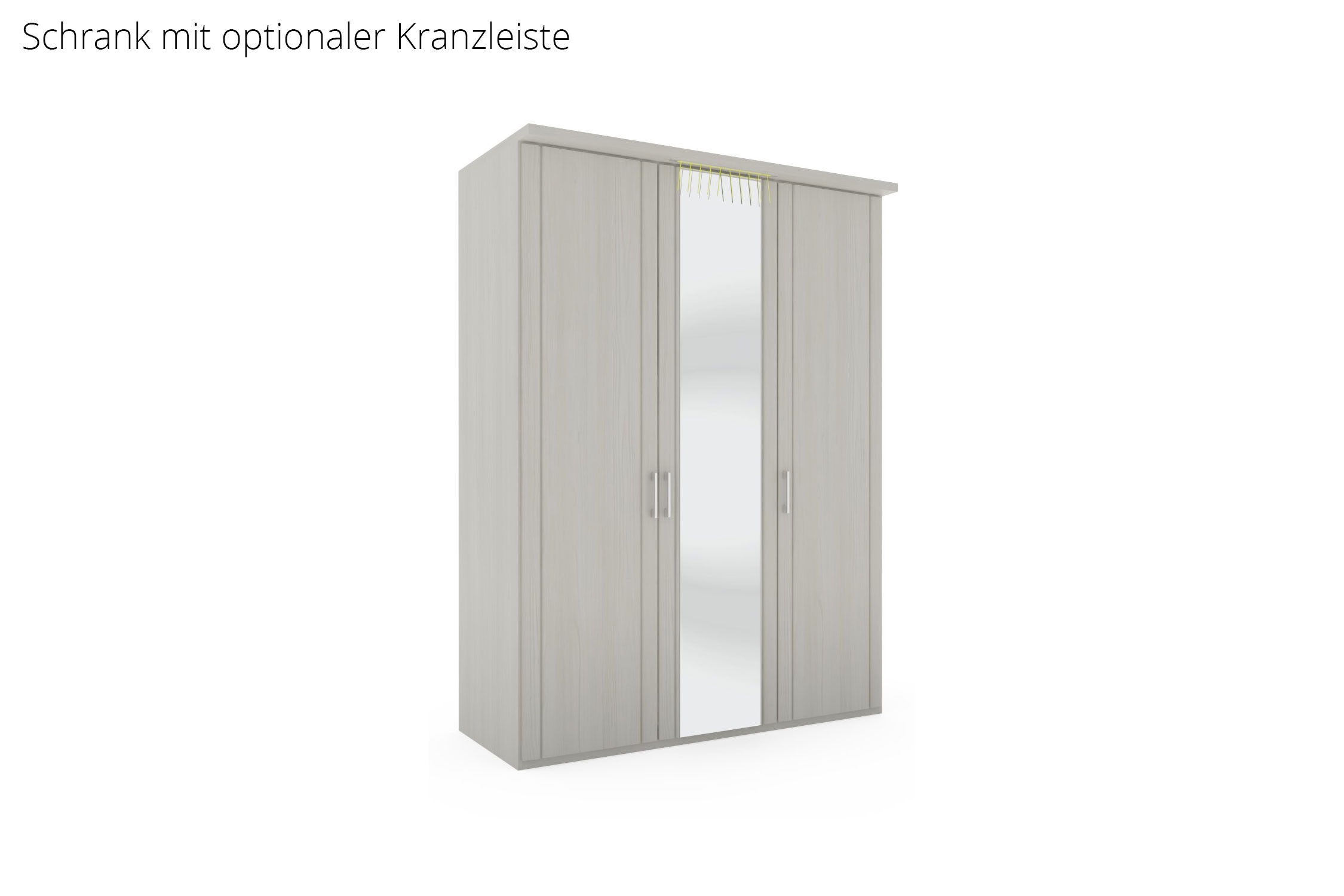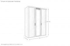 - Kleiderschrank: Drehtürenschrank, 3-türig, 2 Außentüren - Holztüren, 1 Mitteltür - Spiegeltür