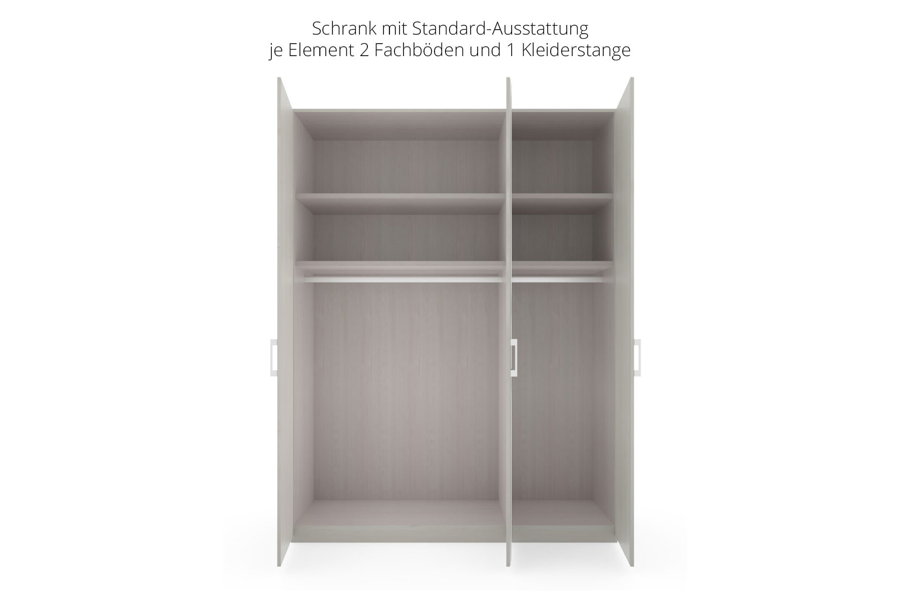 - Kleiderschrank: 1 Element ca. 100 cm breit und 1 Element ca. 50 cm breit, je Element 2 Fachböden und 1 Kleiderstange