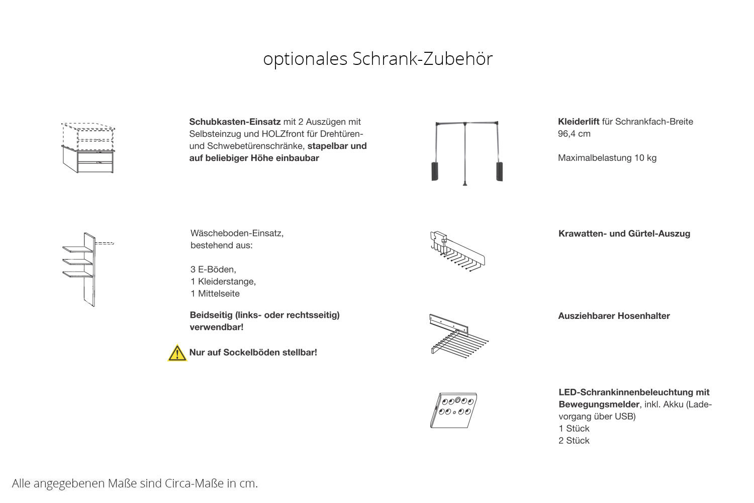 Kippsicherung Achten Sie darauf, dass Ihr Möbel sicher steht und verwenden Sie die Kippsicherung. Kippsicherungen sind nur für stehende Möbelstücke geeignet und dürfen nicht zum Aufhängen von Elementen verwendet werden.