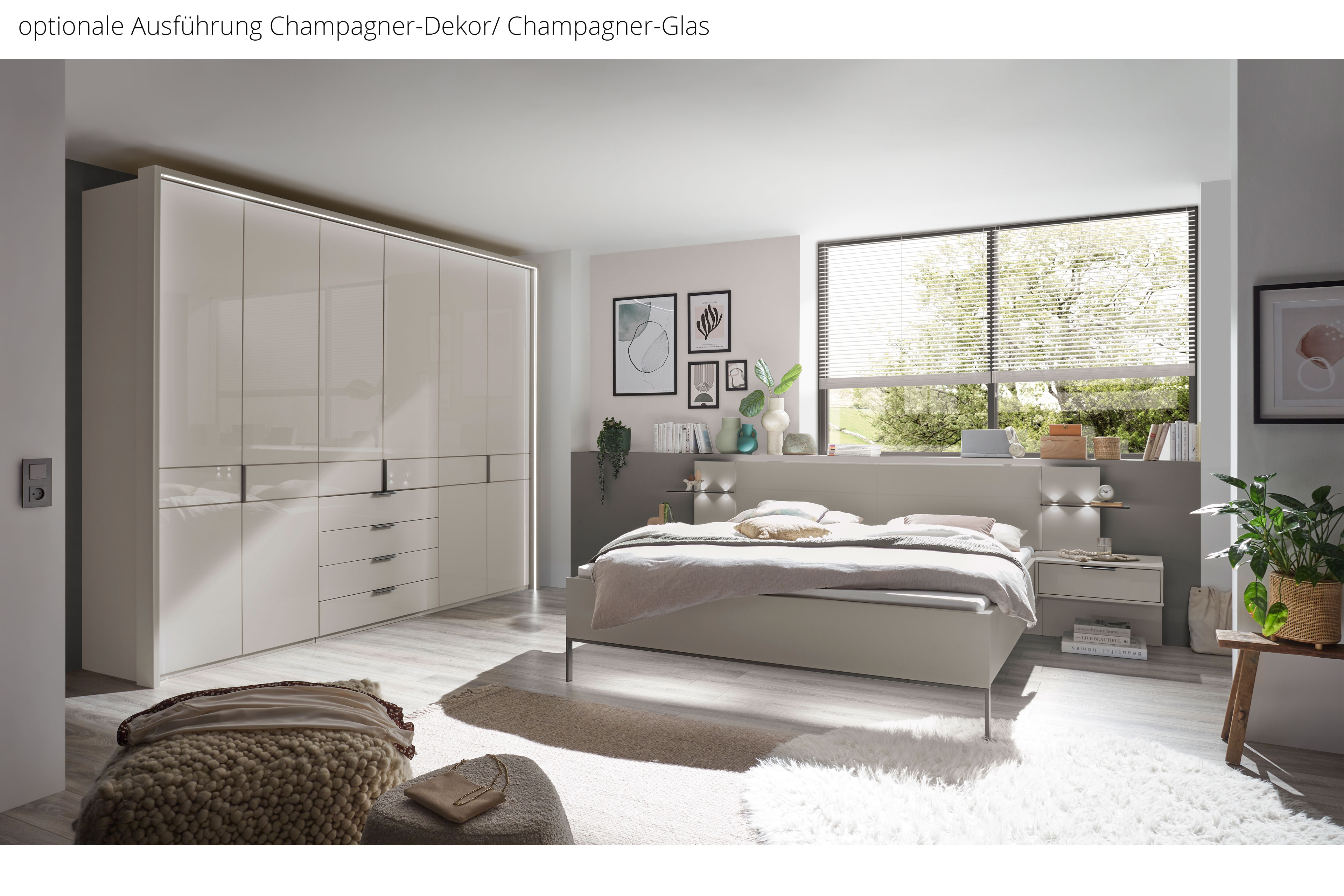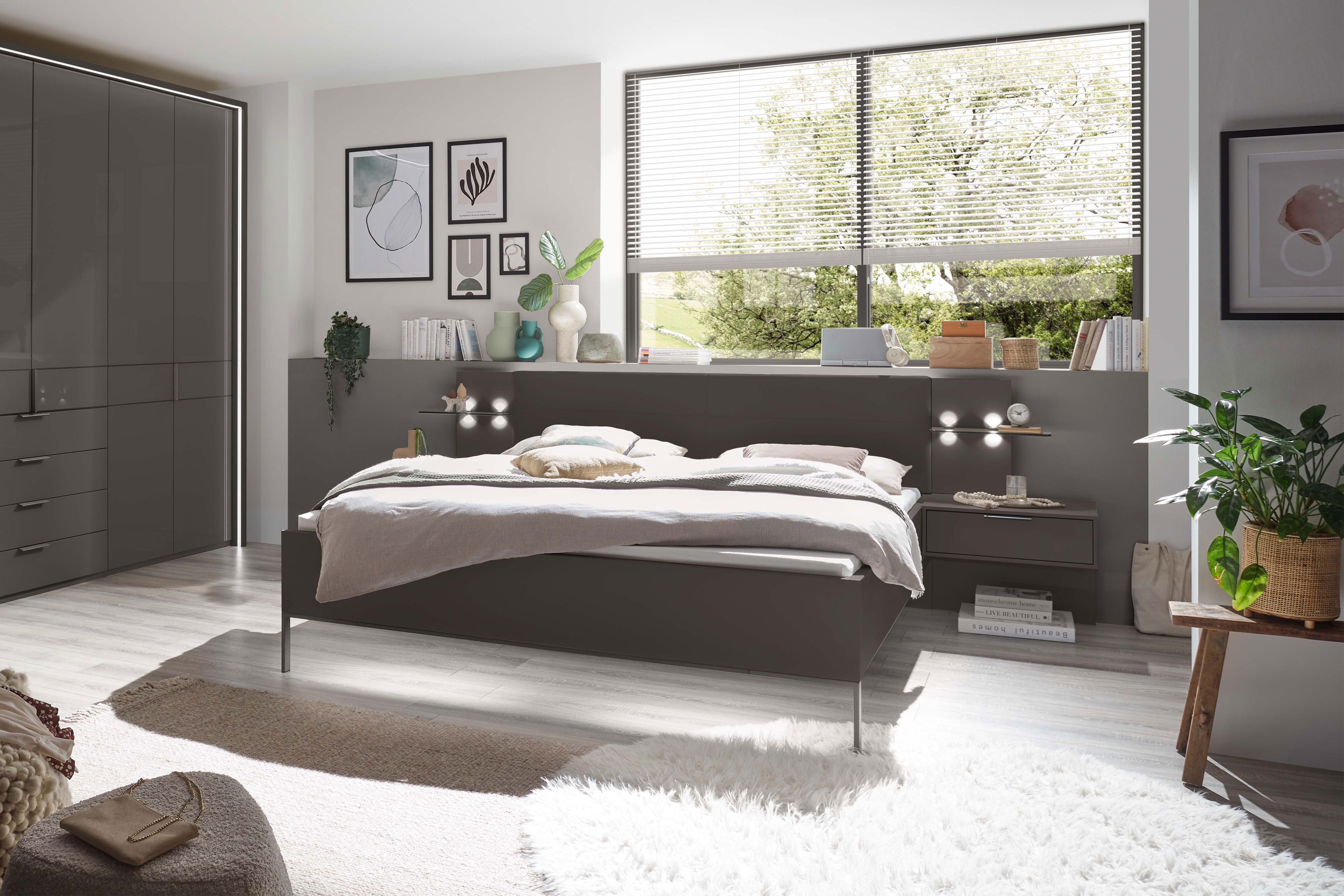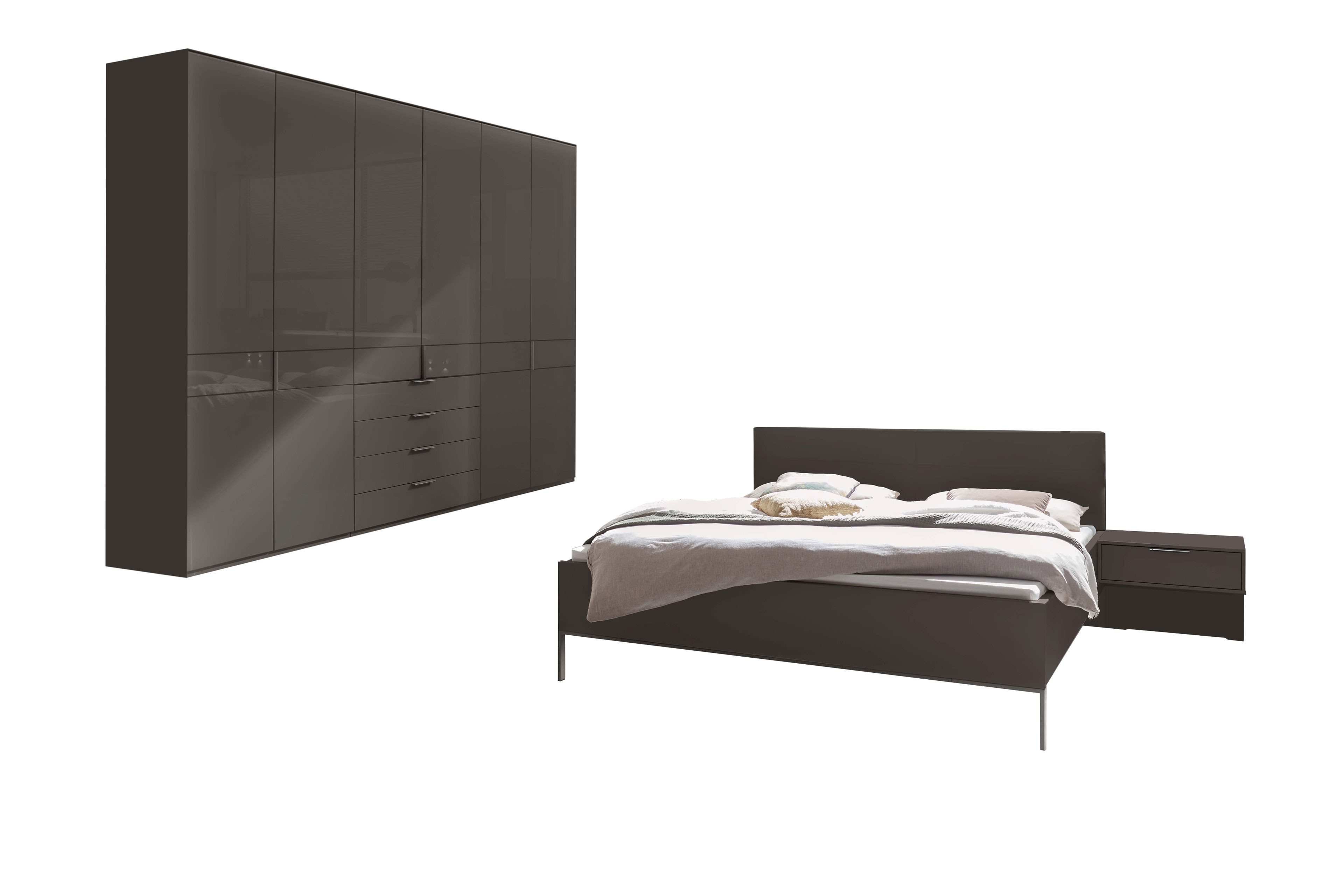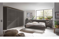 Schrank, Bett & Nachttisch-Paar von Wiemann - Modell Parma - havanna mit Glasfronten Parma - die moderne Schlafraumlösung.