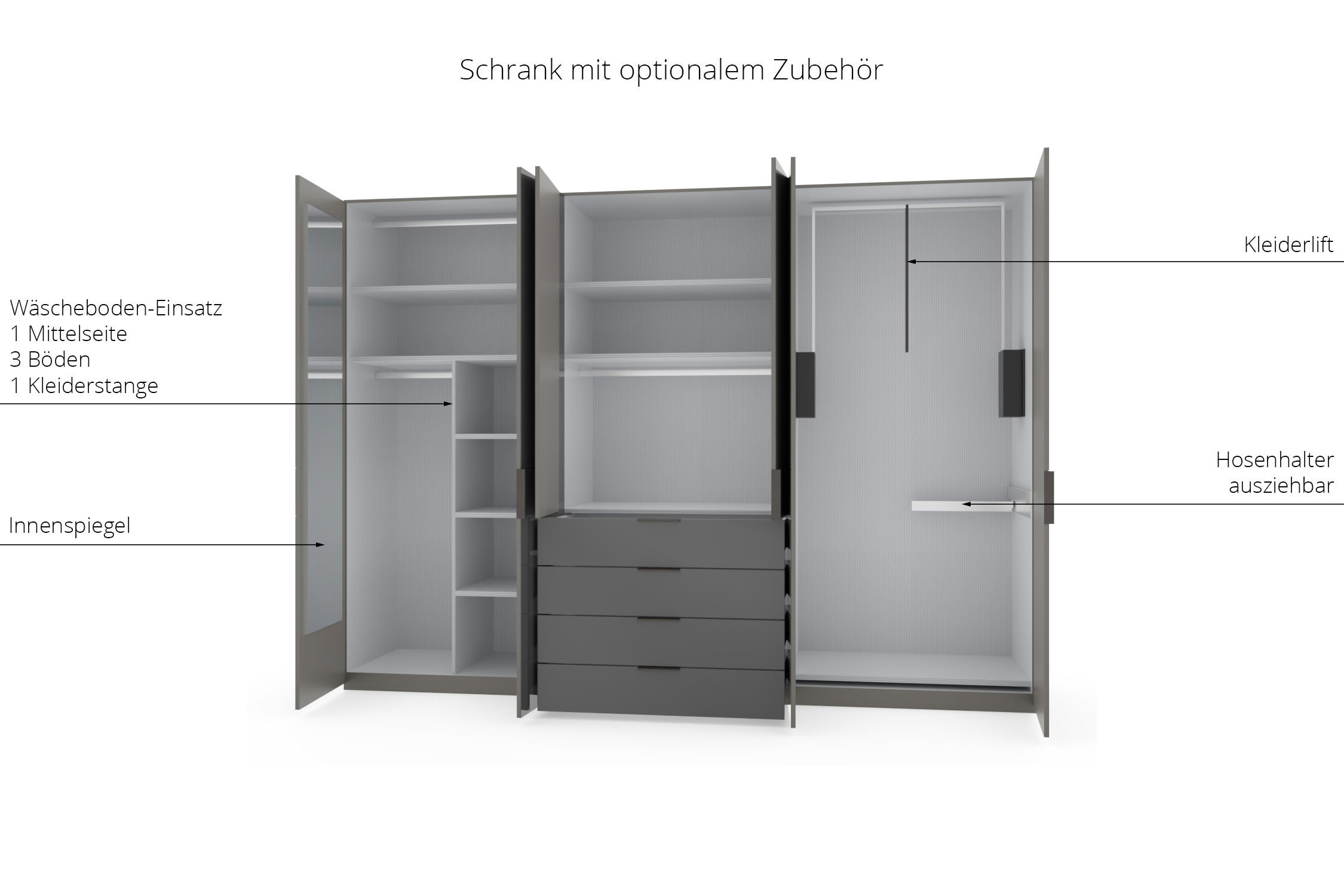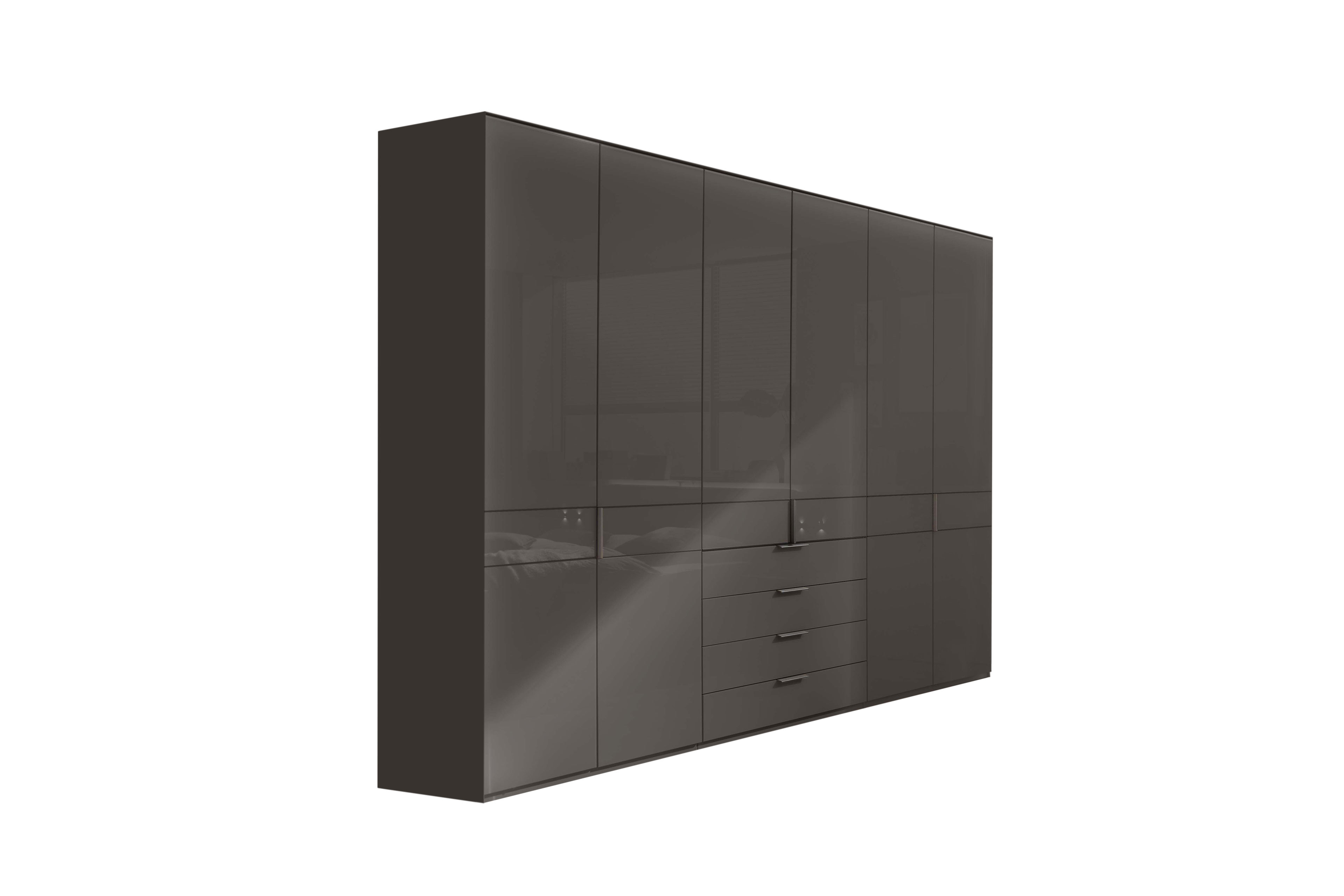 - Kleiderschrank: 6-türig, Front mit Querriegel, 4 Schubladen mittig