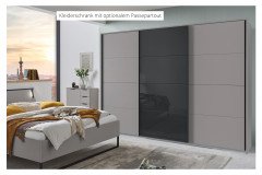 Das Schlafzimmer Tilburg von Wimex ist eine besondere Kombination aus modernem Design, praktischer Funktionalität und gemütlicher Wärme, die Ihr Schlafzimmer in eine Oase der Ruhe verwandelt. Der Kleiderschrank vereint auf einer Breite von ca. 270 cm drei Schrankelemente und bietet dank der mittigen Glasfront einen Hauch von Leichtigkeit und Glanz. Zwei edle Farbwelten stehen Ihnen bei Tilburg zur Verfügung und schenken Ihnen mit Saharagrau eine warme, entspannte Atmosphäre und mit Grafit ein moderne, ausdrucksstarke Raumstimmung. Der Schwebetürenschrank überzeugt hierbei nicht nur äußerlich: Im Inneren bieten drei Elemente jeweils einen Fachboden und eine Kleiderstange, damit Sie Kleidung, Accessoires und Betttextilien übersichtlich sortiert und griffbereit haben. Mit unseren Zusatzoptionen ergänzen Sie den Schrank mit zusätzlichem Schrankzubehör wie weiteren Böden, Dämpfungsbeschlägen, einem Schubkasteneinsatz oder einer Wäscheeinteilung – ganz flexibel und genau da, wo Sie es brauchen. So entsteht maßgeschneiderter Stauraum, der Ihren Alltag erleichtert und Ihnen jeden Morgen ein gutes Gefühl schenkt. Zum Wimex Schlafzimmer-Set gehört ein Bett mit einer Grundliegefläche von 140x200 cm, das sich in weiteren Größen problemlos anpassen lässt. Eine praktische Kopfteilbeleuchtung setzt sanfte Akzente und schafft eine gemütliche Abendstimmung. Abgerundet wird das Angebot durch einen passenden Nachtschrank, der bei Bedarf durch einen weiteren Nachtschrank ergänzt werden kann. Zusammen mit dem Konfigurator lässt sich Tilburg individuell planen: Wählen Sie aus verschiedenen Schränken, Kommoden und Zubehörteilen und stellen Sie ganz in Ruhe Ihre persönliche Traumeinrichtung zusammen. Tilburg von Wimex – eine Einladung, Ruhe, Ordnung und Wohlbefinden im Schlafzimmer zu erleben ...