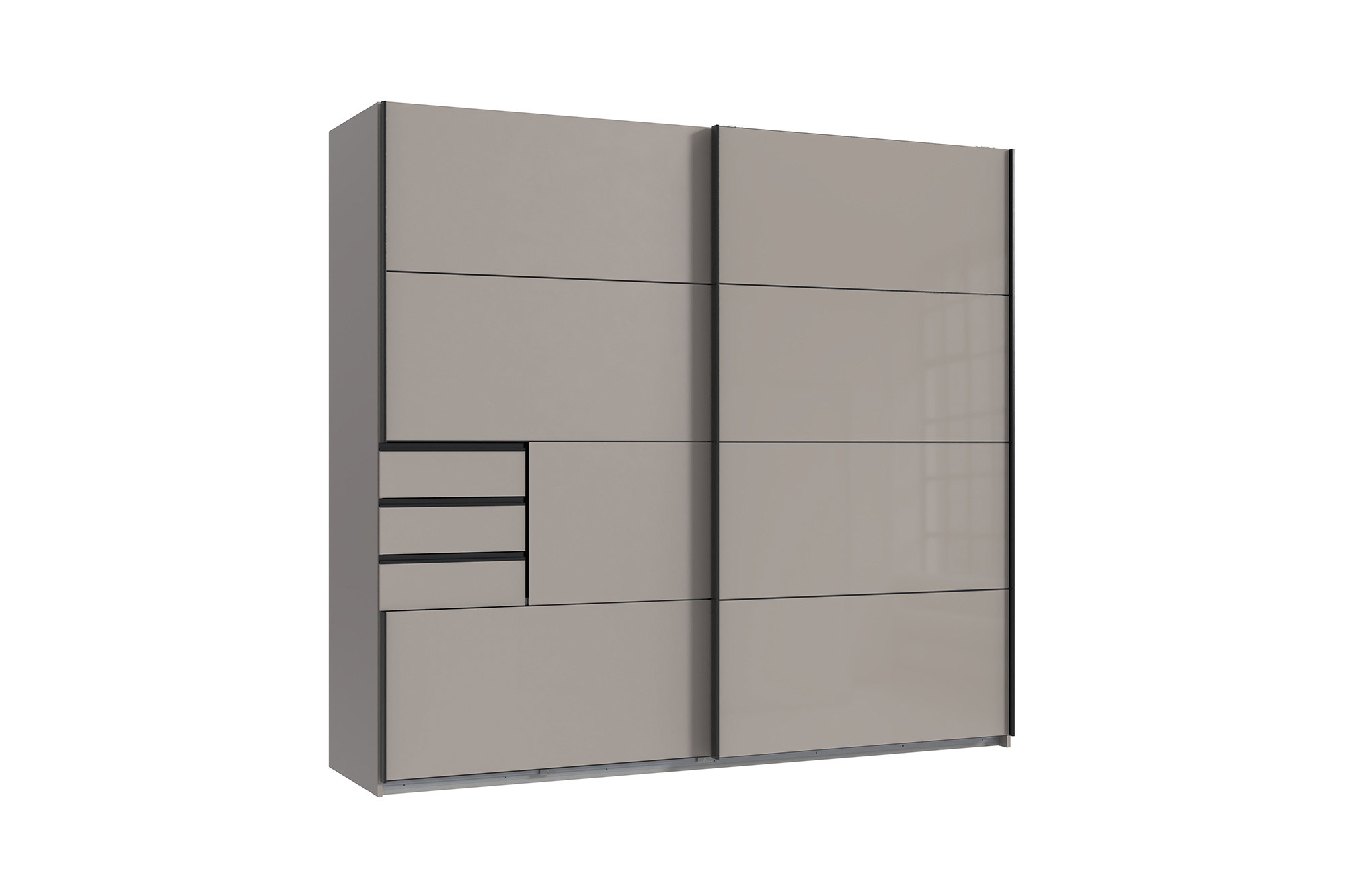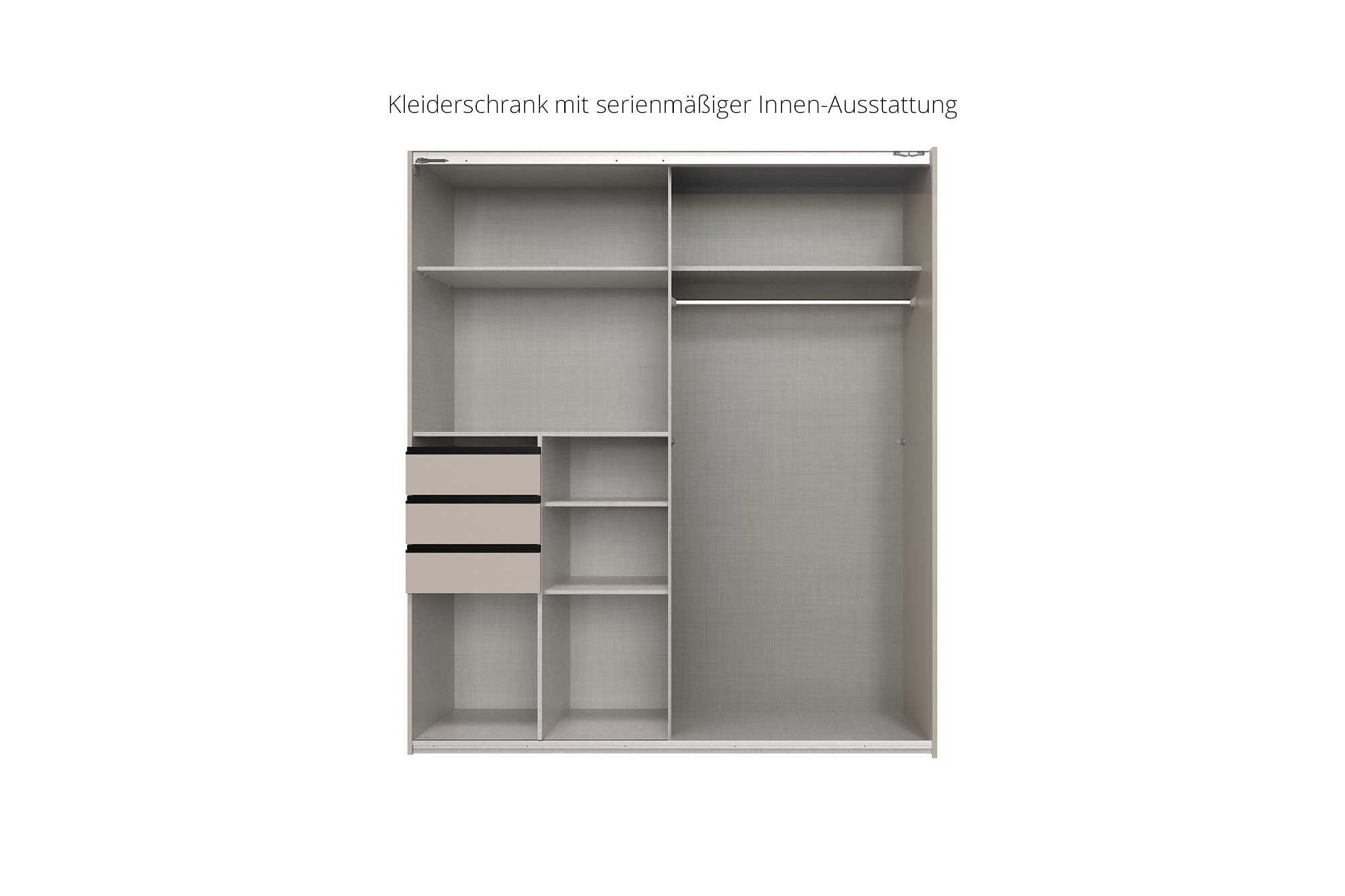 - Schwebetürenschrank: 2-türig mit 3 Schubkästen