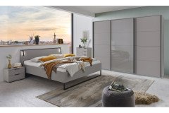 Das Schlafzimmer Tilburg von Wimex ist eine besondere Kombination aus modernem Design, praktischer Funktionalität und gemütlicher Wärme, die Ihr Schlafzimmer in eine Oase der Ruhe verwandelt. Der Kleiderschrank vereint auf einer Breite von ca. 270 cm drei Schrankelemente und bietet dank der mittigen Glasfront einen Hauch von Leichtigkeit und Glanz. Zwei edle Farbwelten stehen Ihnen bei Tilburg zur Verfügung und schenken Ihnen mit Saharagrau eine warme, entspannte Atmosphäre und mit Grafit ein moderne, ausdrucksstarke Raumstimmung. Der Schwebetürenschrank überzeugt hierbei nicht nur äußerlich: Im Inneren bieten drei Elemente jeweils einen Fachboden und eine Kleiderstange, damit Sie Kleidung, Accessoires und Betttextilien übersichtlich sortiert und griffbereit haben. Mit unseren Zusatzoptionen ergänzen Sie den Schrank mit zusätzlichem Schrankzubehör wie weiteren Böden, Dämpfungsbeschlägen, einem Schubkasteneinsatz oder einer Wäscheeinteilung – ganz flexibel und genau da, wo Sie es brauchen. So entsteht maßgeschneiderter Stauraum, der Ihren Alltag erleichtert und Ihnen jeden Morgen ein gutes Gefühl schenkt. Zum Wimex Schlafzimmer-Set gehört ein Bett mit einer Grundliegefläche von 140x200 cm, das sich in weiteren Größen problemlos anpassen lässt. Eine praktische Kopfteilbeleuchtung setzt sanfte Akzente und schafft eine gemütliche Abendstimmung. Abgerundet wird das Angebot durch einen passenden Nachtschrank, der bei Bedarf durch einen weiteren Nachtschrank ergänzt werden kann. Zusammen mit dem Konfigurator lässt sich Tilburg individuell planen: Wählen Sie aus verschiedenen Schränken, Kommoden und Zubehörteilen und stellen Sie ganz in Ruhe Ihre persönliche Traumeinrichtung zusammen. Tilburg von Wimex – eine Einladung, Ruhe, Ordnung und Wohlbefinden im Schlafzimmer zu erleben ...