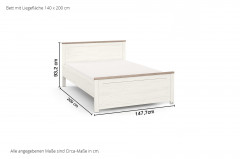- 1 x 83-B - Bett Liegefläche 140 x 200 cm, BHT ca. 147,7/93,2/209 cm