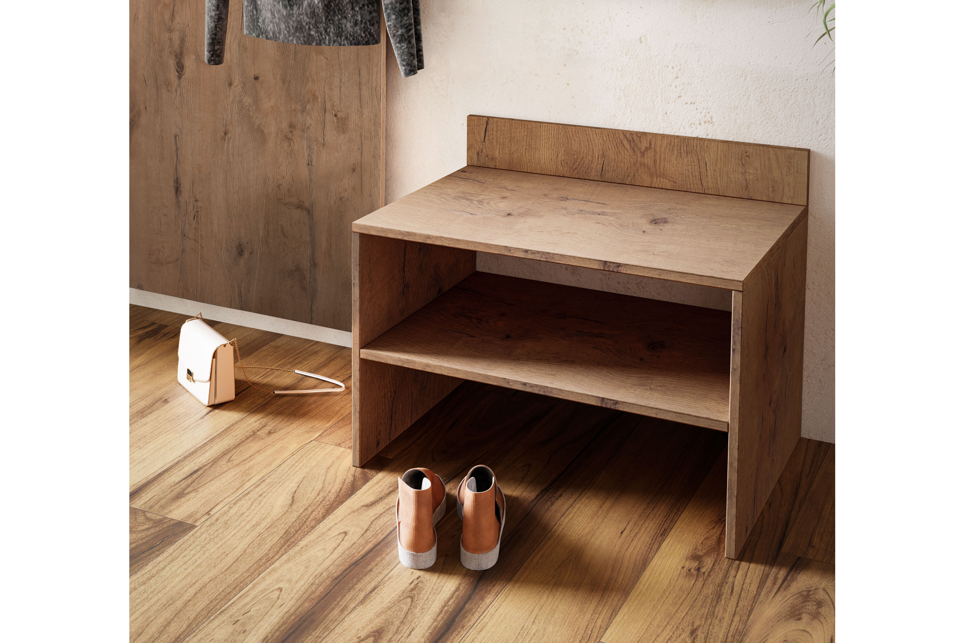 Das etwa 80 x 75 x 50 cm große Regalelement aus der Möbel-Serie Meran von Schösswender, das für die Einrichtung verschiedener Objekträume konzipiert wurde, bietet sich als funktionale Ablagelösung im Eingangsbereich an. Auf dem Oberboden lassen sich problemlos die Handtasche oder auch der Einkaufskorb abstellen, wobei dank des Rückwandpaneels zusätzlich ein Wand-Schutz gegeben ist. Dies ist vor allem ein Vorteil, wenn Sie dieses Möbelstück als Kofferablage nutzen möchten. Im unteren Bereich befindet sich ein offenes Fach, in dem Sie beispielsweise Boxen platzieren können, um Accessoires oder die Hausschuhe bis zur Nutzung unsichtbar aufzubewahren. Über die Zusatzoptionen können Sie das Regal direkt mit weiteren Möbeln des Programms Meran ergänzen. Wählbar sind in je zwei Größen ein Garderobenpaneel und ein Hängespiegel. Bestimmen Sie ganz individuell, welche Schösswender Möbel Ihren Flur schmücken sollen und in welcher Holznachbildung oder Farbe sie Ihnen am besten gefallen.