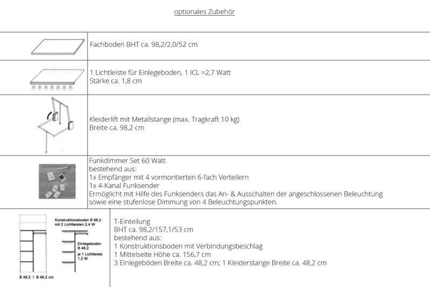 T-Schrankeinteilung bestehend aus: