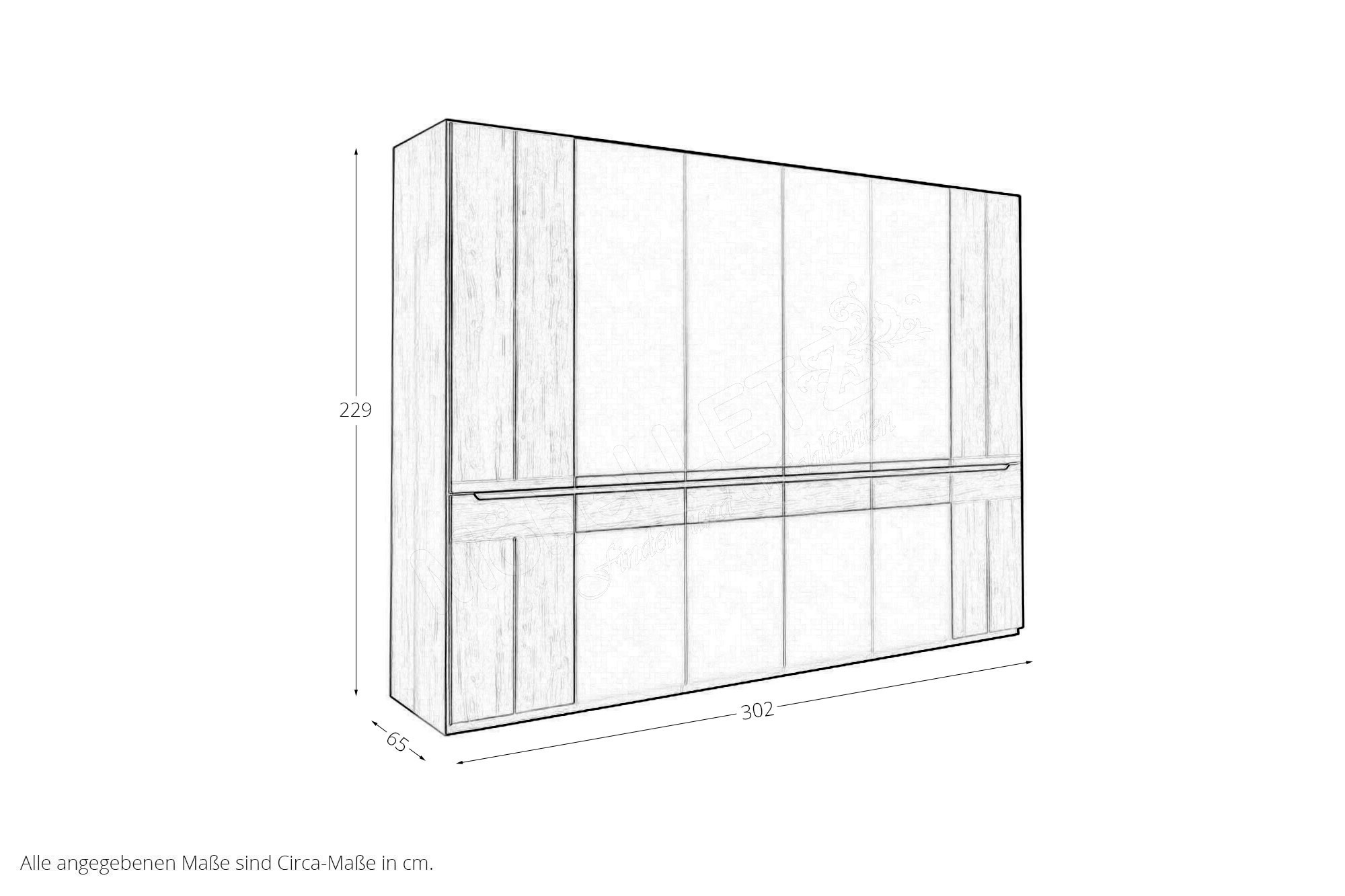 Schrankmaße mit Passepartout BHT ca. 305/231,5/67,3 cm (Art-Nr. 328065)