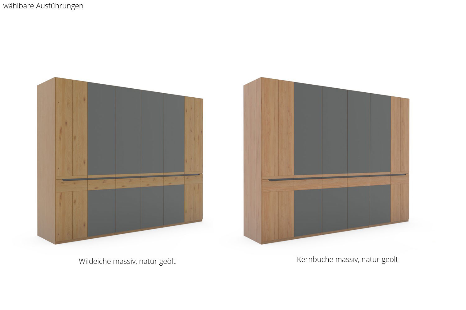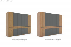 Front (außer Glastüren): Wildeiche massiv, naturbelassen geölt