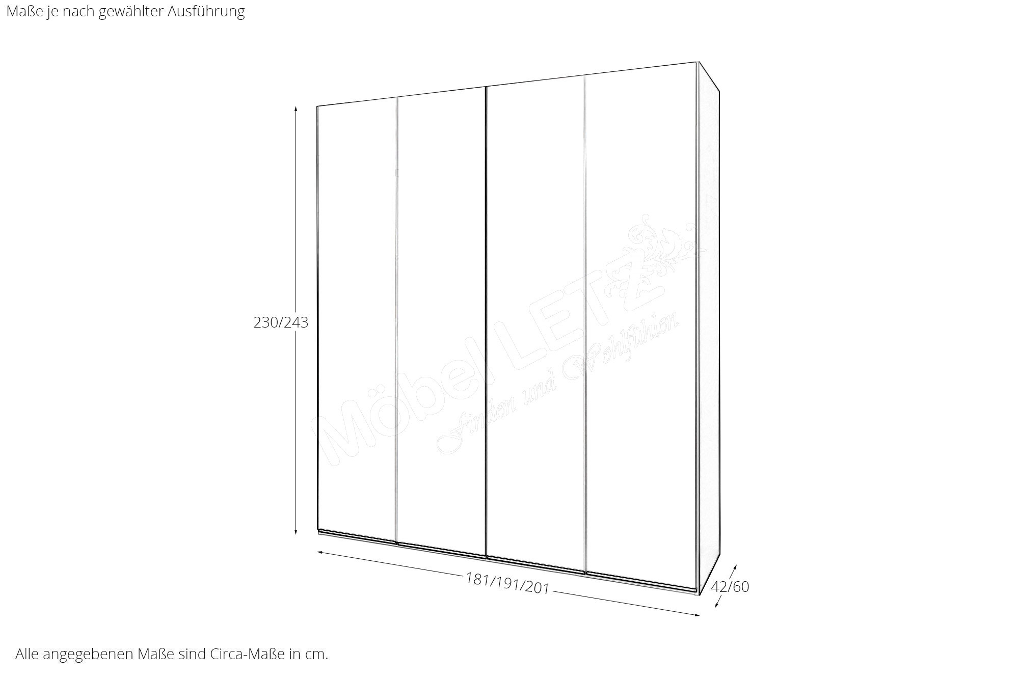 - Schrank: Drehtürenschrank 4-türig