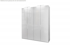 Bringen Sie frischen Wind in Ihr Schlaf- oder Gästezimmer mit dem Drehtürenschrank der Kollektion Glassystem von Disselkamp. Er besticht durch Eleganz und Vielseitigkeit und stellt somit den idealen Ordnungshüter dar, der sich harmonisch in diverse Wohnstile einfügt. Das wird erreicht durch die Kombination aus einem Korpus in Lack weiß und einer glänzenden, weißen Glasfront, die jedem Raum eine beruhigende und frische Ausstrahlung verleiht. Dank unserer Zusatzoptionen gestalten Sie immer einen Schrank, der wie für Sie gemacht ist und sich ideal an Ihre Gegebenheiten anpasst. Denn dort können Sie nicht nur die Farbausführung anpassen, sondern außerdem auch die Breite, Höhe und Tiefe verändern. Der Schrank ist in jeder Variante selbstverständlich in zwei Schrankabteile gegliedert, die jeweils mit insgesamt vier Fachböden sowie zwei Kleiderstangen ausgestattet sind. Eine detailliertere Schrankeinteilung ist ebenfalls optional möglich; beispielsweise können eine T-Einteilung oder Innen-Schubkästen die Innenausstattung ergänzen. Glassystem von Disselkamp – wie gemacht für jede Menge Ordnung.