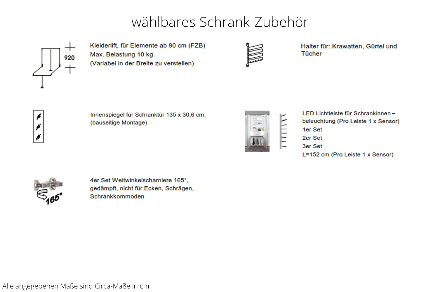 - Innenausstattung: 2 Böden, 1 Kleiderstange je Element