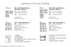 - Einlegeböden: ca. 23 mm stark, 4-fach arretiert und variabel einstellbar
