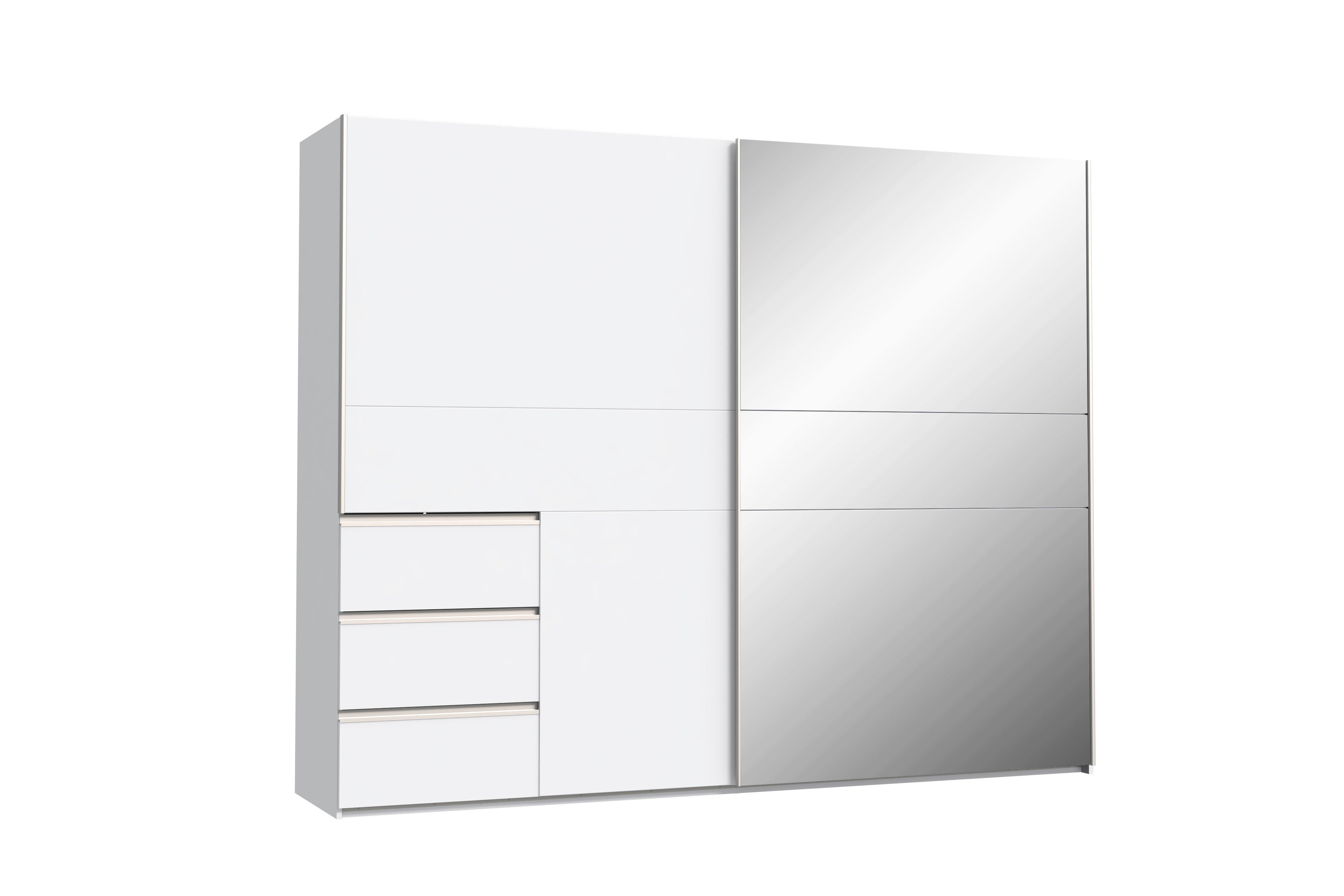 links 1 Schwebetür und 3 Schubkästen in Weiß,
