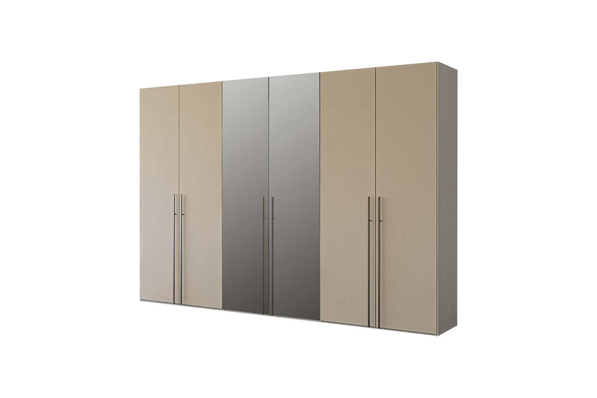 Kleiderschrank 6-türig von JUTZLER - Modell Longline - 2 Mitteltüren mit Spiegelauflagen Form & Funktion - Schränke sind mehr als nur Stauraum