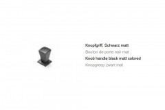 - Griffausführung: Knopfgriffe, schwarz matt, Durchmesser je ca. 1,5 cm
