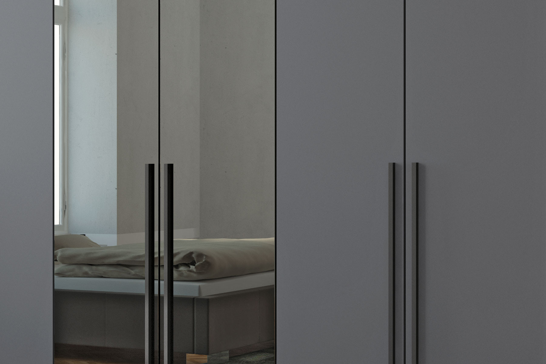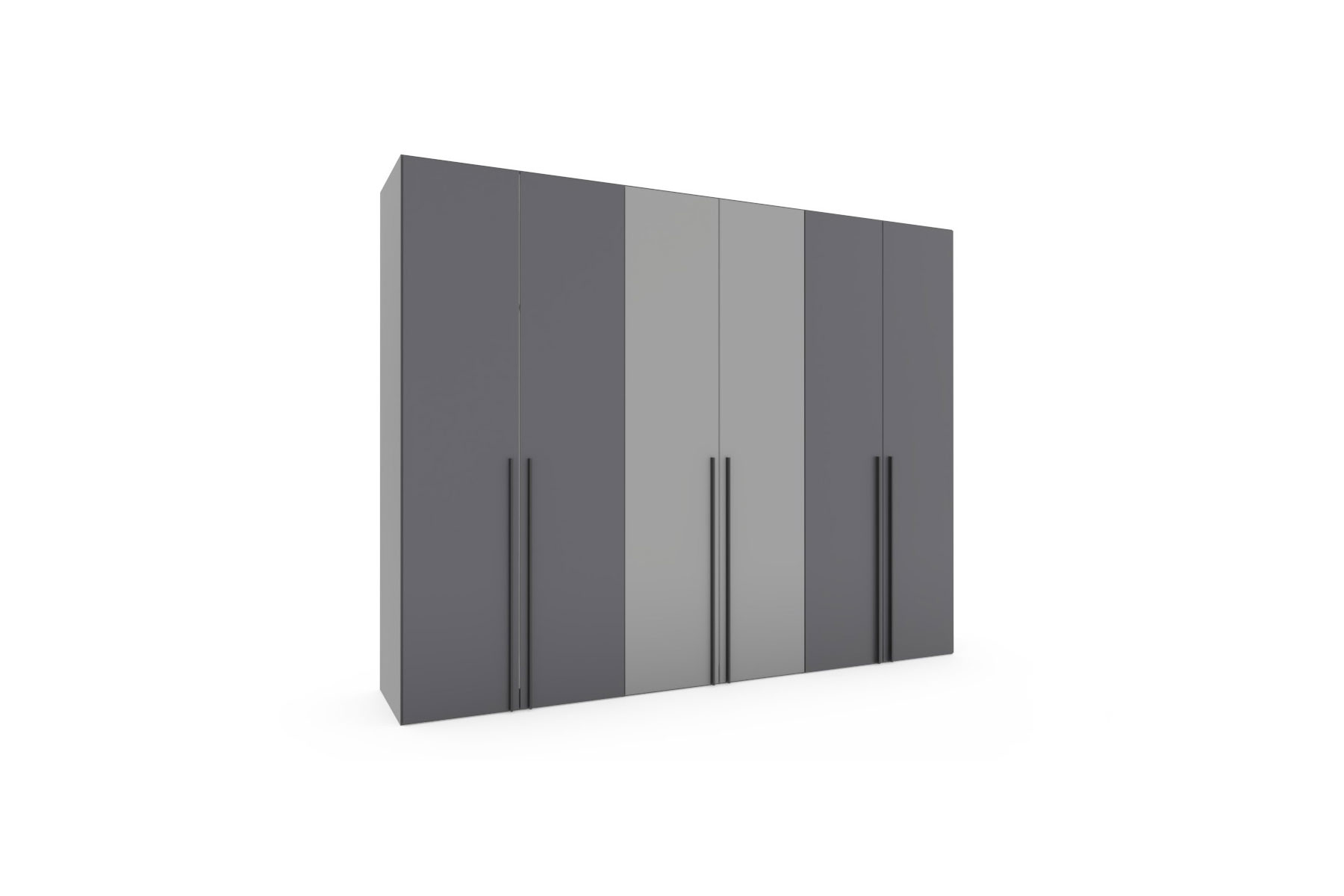 Drehtürenschrank von JUTZLER - Modell Topline - mit dunklen Spiegeln auf den Mitteltüren Form & Funktion - Schränke sind mehr als nur Stauraum