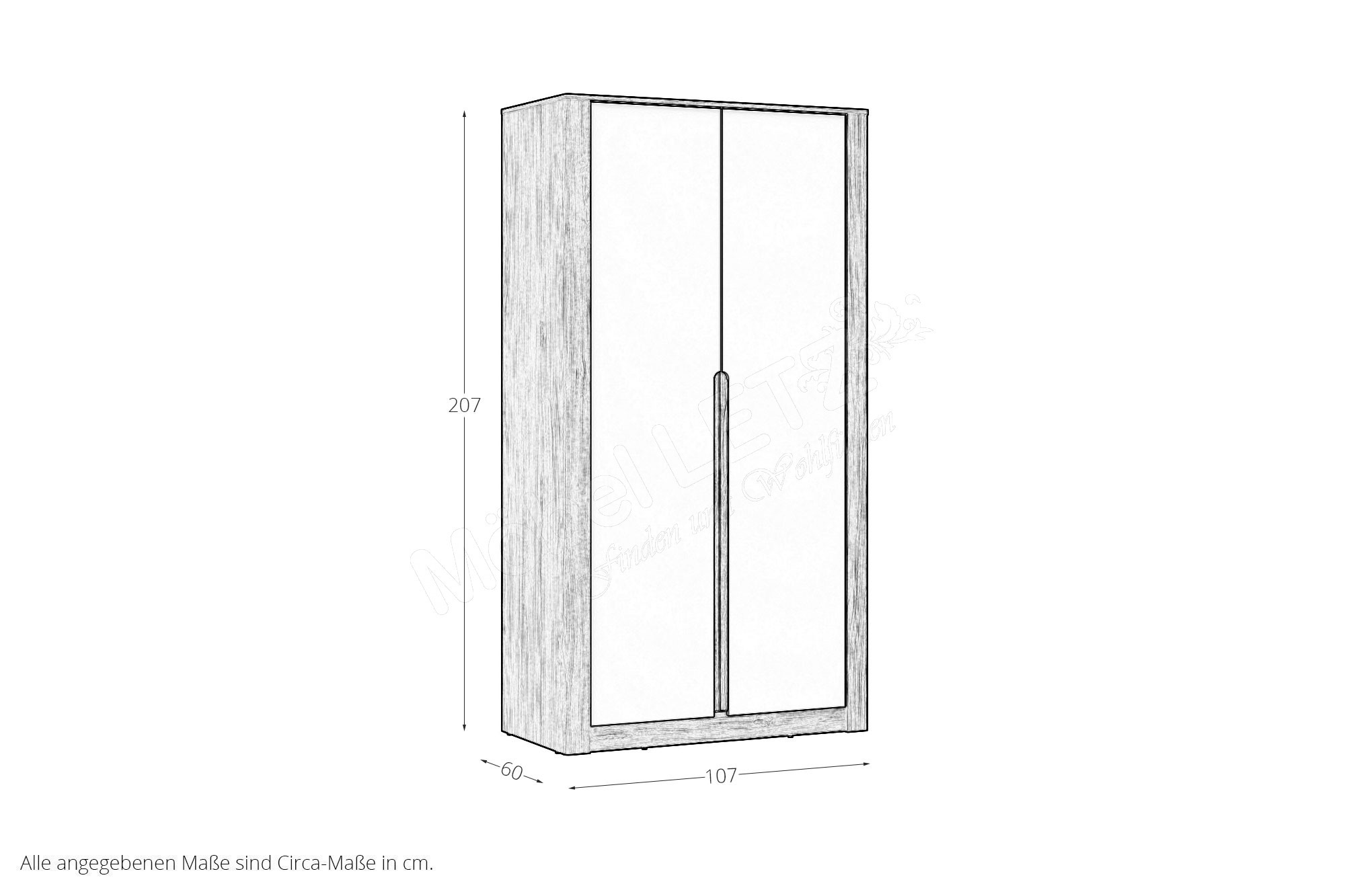 - 1 x AMAS01 - Kleiderschrank, BHT ca.: 106,2/206,5/60 cm
