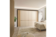 - Kleiderschrank: 6 Drehtüren mit Querleiste, Außentüren mit Lamellen