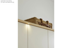 So schön war Ordnung noch nie. Der Kleiderschrank aus der Serie Montino von Musterring überzeugt mit einem puristisch-modernen Design und setzt dank der Verbindung von Balkeneiche-Furnier und sandfarbenem Lack stilvolle Akzente im Schlafzimmer. Sie können in unseren Optionen die für Sie passende Breite und Höhe auswählen. Dabei erhalten Sie stets drei Türenelemente, die insgesamt sechs Fachböden und drei Kleiderstangen enthalten. Dort gibt es natürlich noch mehr zu entdecken: zusätzliches Innenzubehör wie eine T-Einteilung, Innenschubkästen oder ein Hosenträger lassen sich dort mit nur wenigen Klicks fix ergänzen. Eine Kranzleiste kann den Look optional vervollständigen und den Schrank mit einer LED-Spot-Beleuchtung ins richtige Licht setzen. Drei elegante Griffleisten in Balkeneiche Furnier runden das natürliche Erscheinungsbild ab und gewährleisten einen komfortablen Zugang zu all Ihren Kleidungsstücken. Montino von Musterring – viel Platz für Individualität.