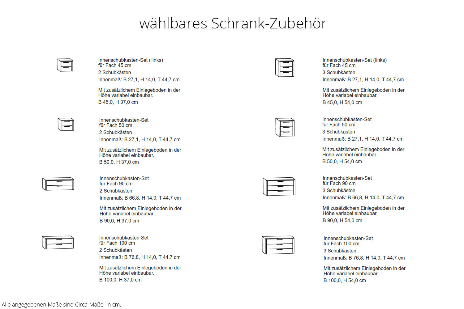 Hinweis: Innenschubkästen können mit einem zusätzlichen Einlegeboden in der Höhe variabel eingebaut werden.