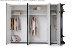 Standard-Ausstattung je Element 2 Einlegeböden und 1 Kleiderstange (Art-Nr. 98200+98249+91239)