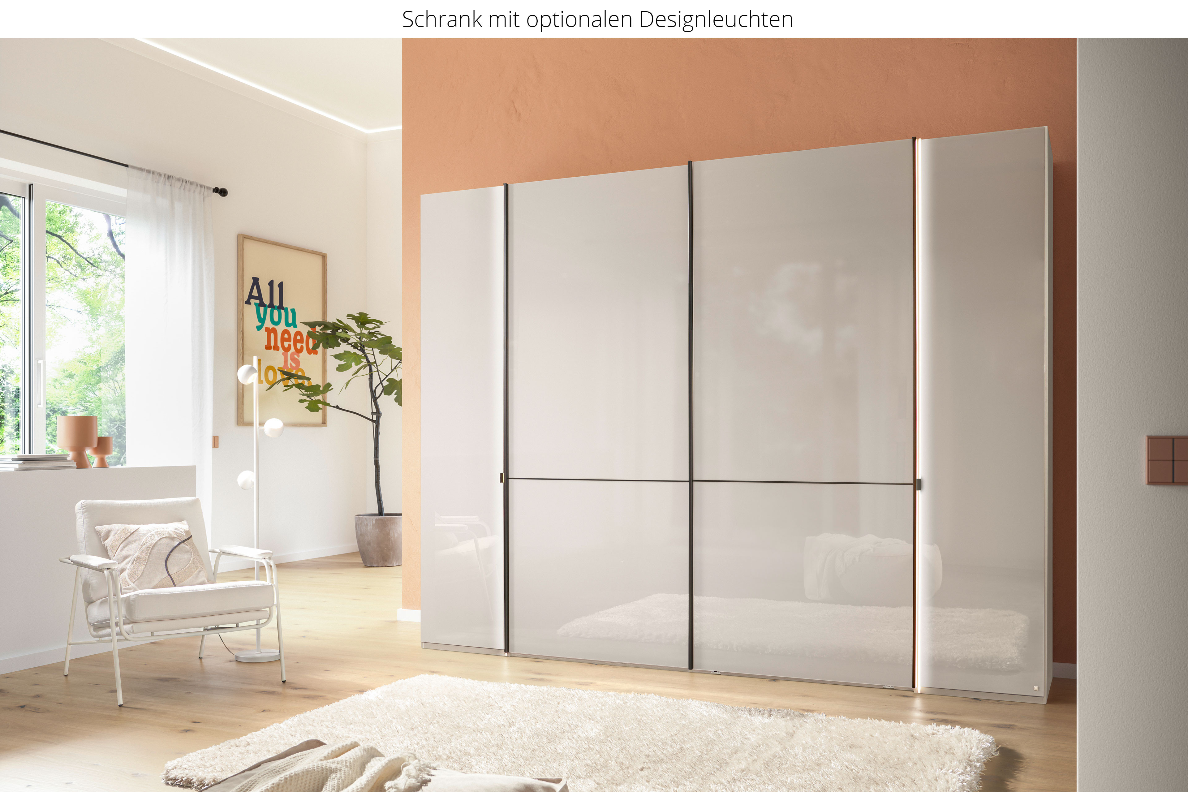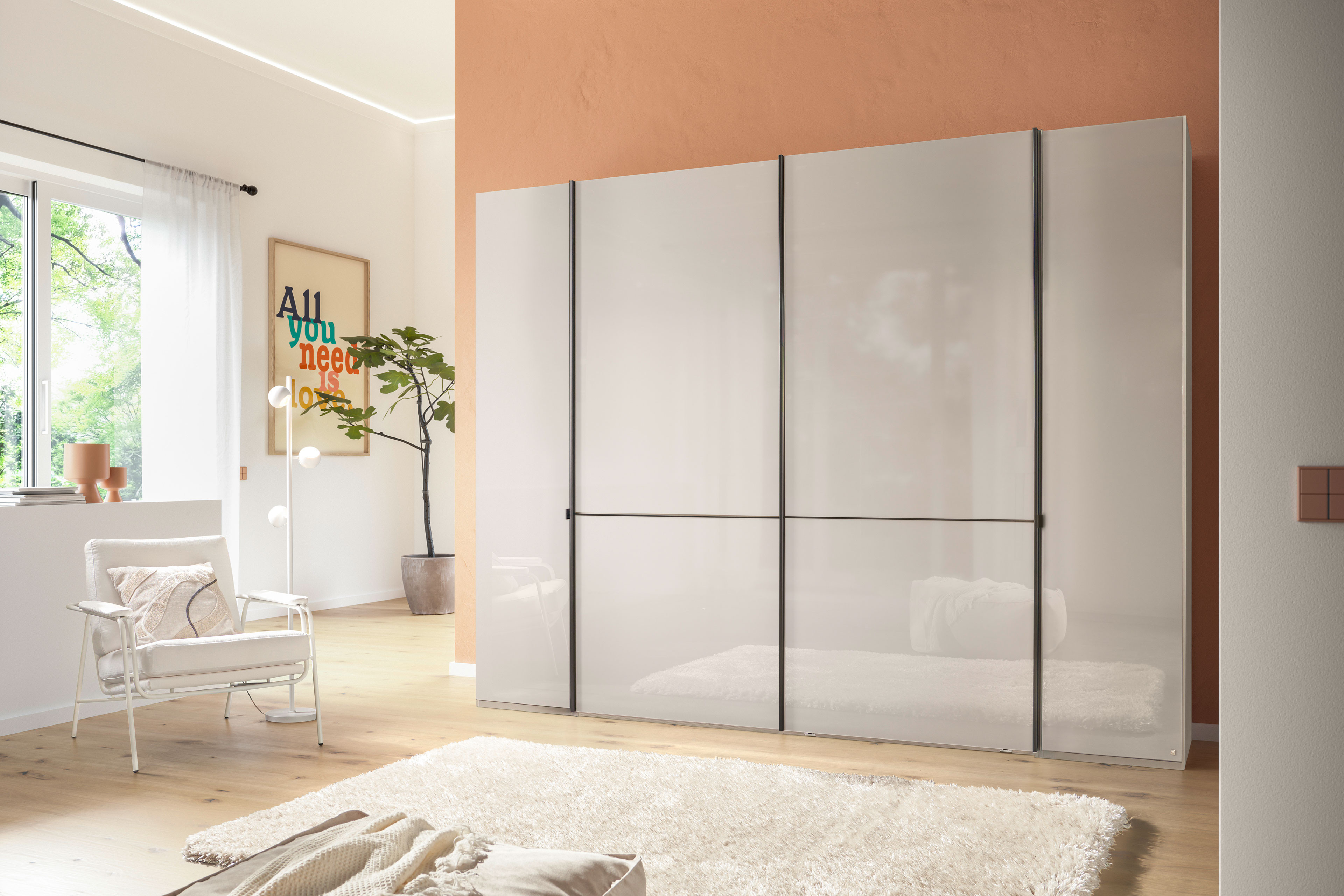 mittig 2 Schwebetüren mit schmaler Aufleistung