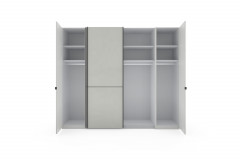 - Kleiderschrank: 4-türig, 2 Drehtüren außen und 2 Schwebetüren mittig