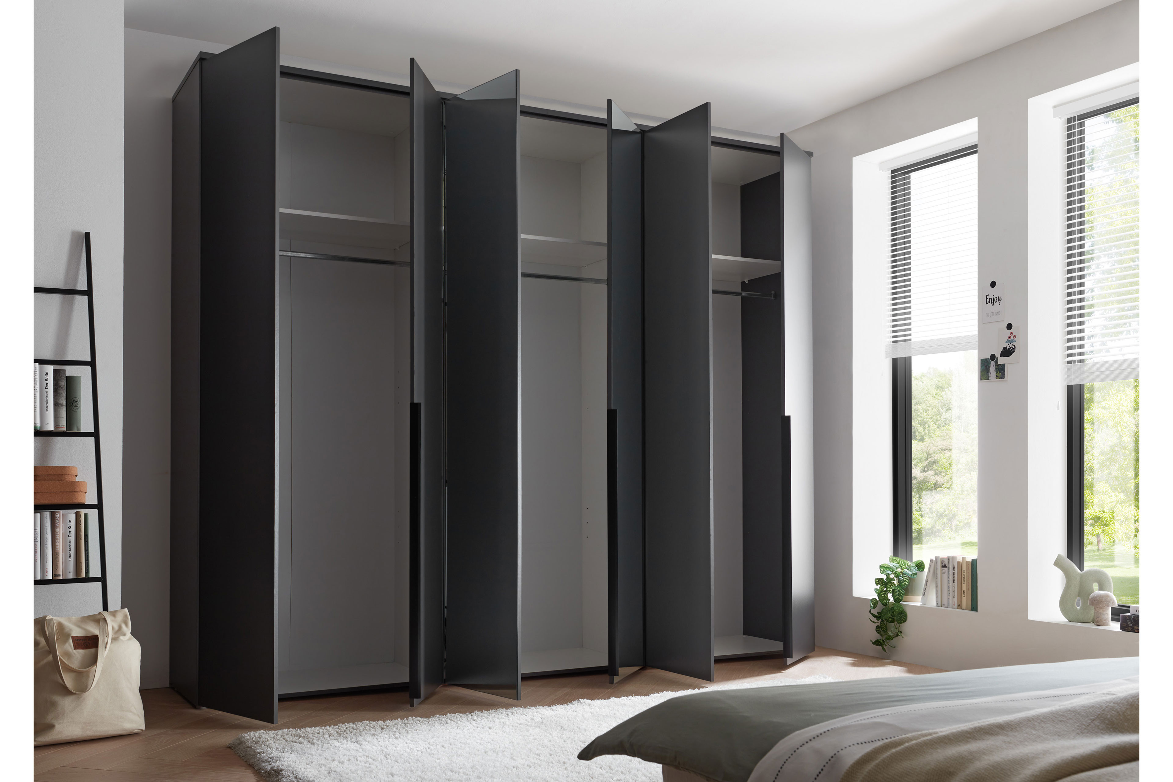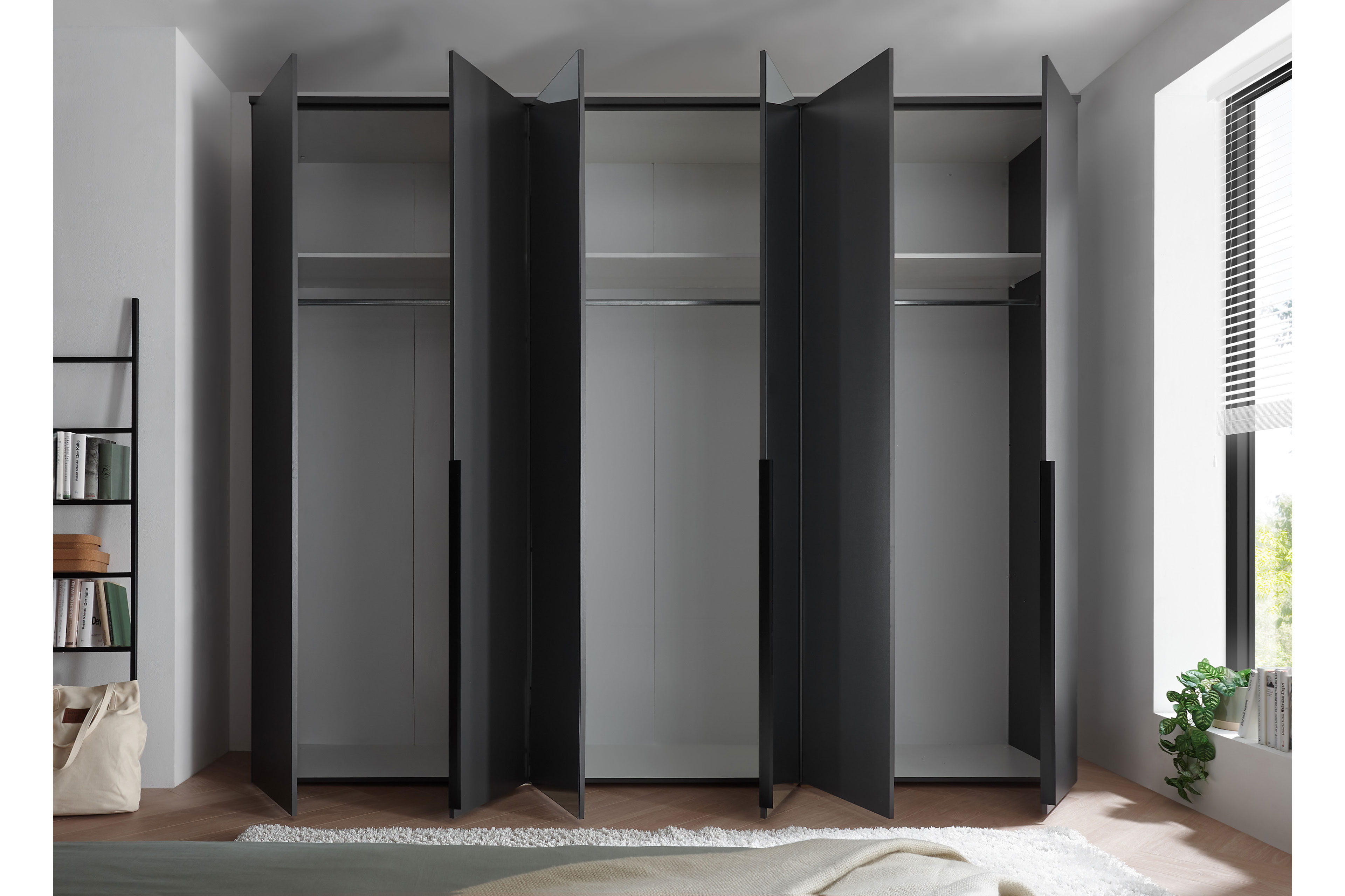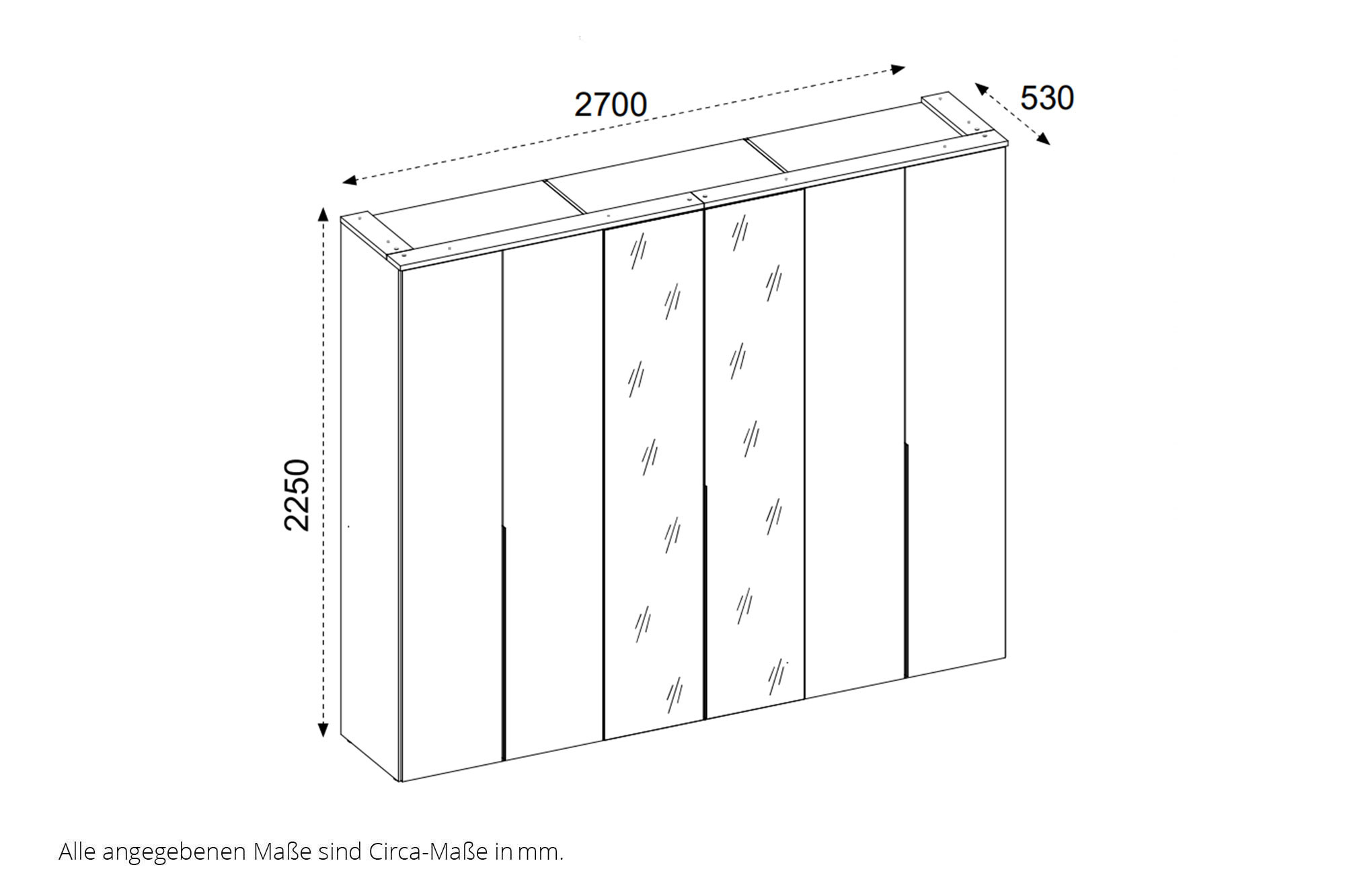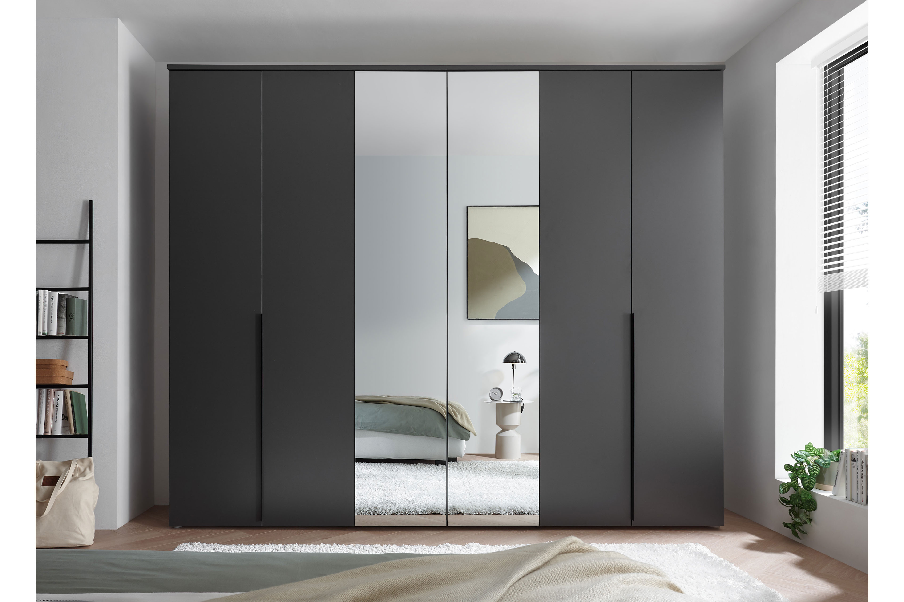 - Kleiderschrank: 6-türig (2 Mitteltüren mit Spiegel)