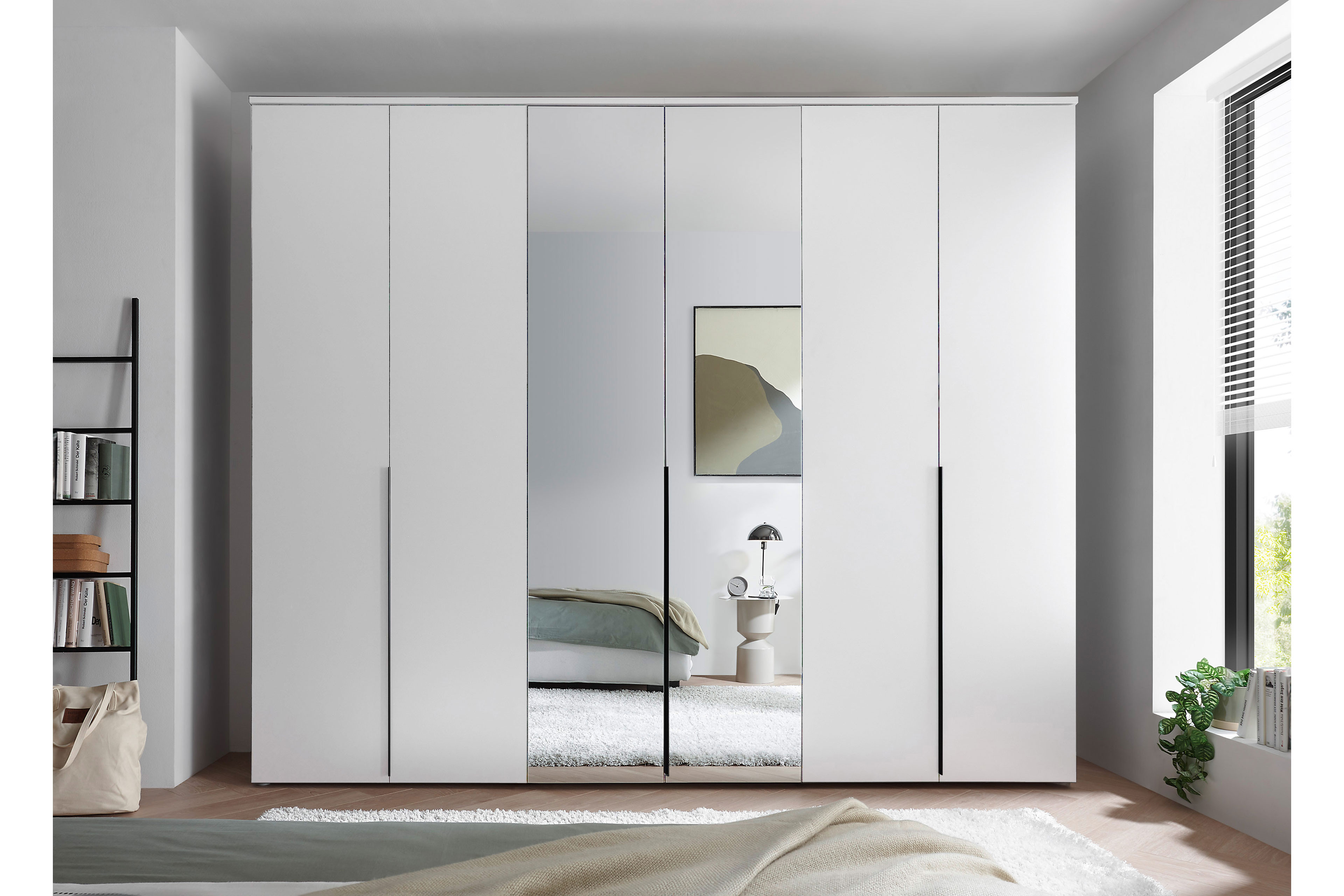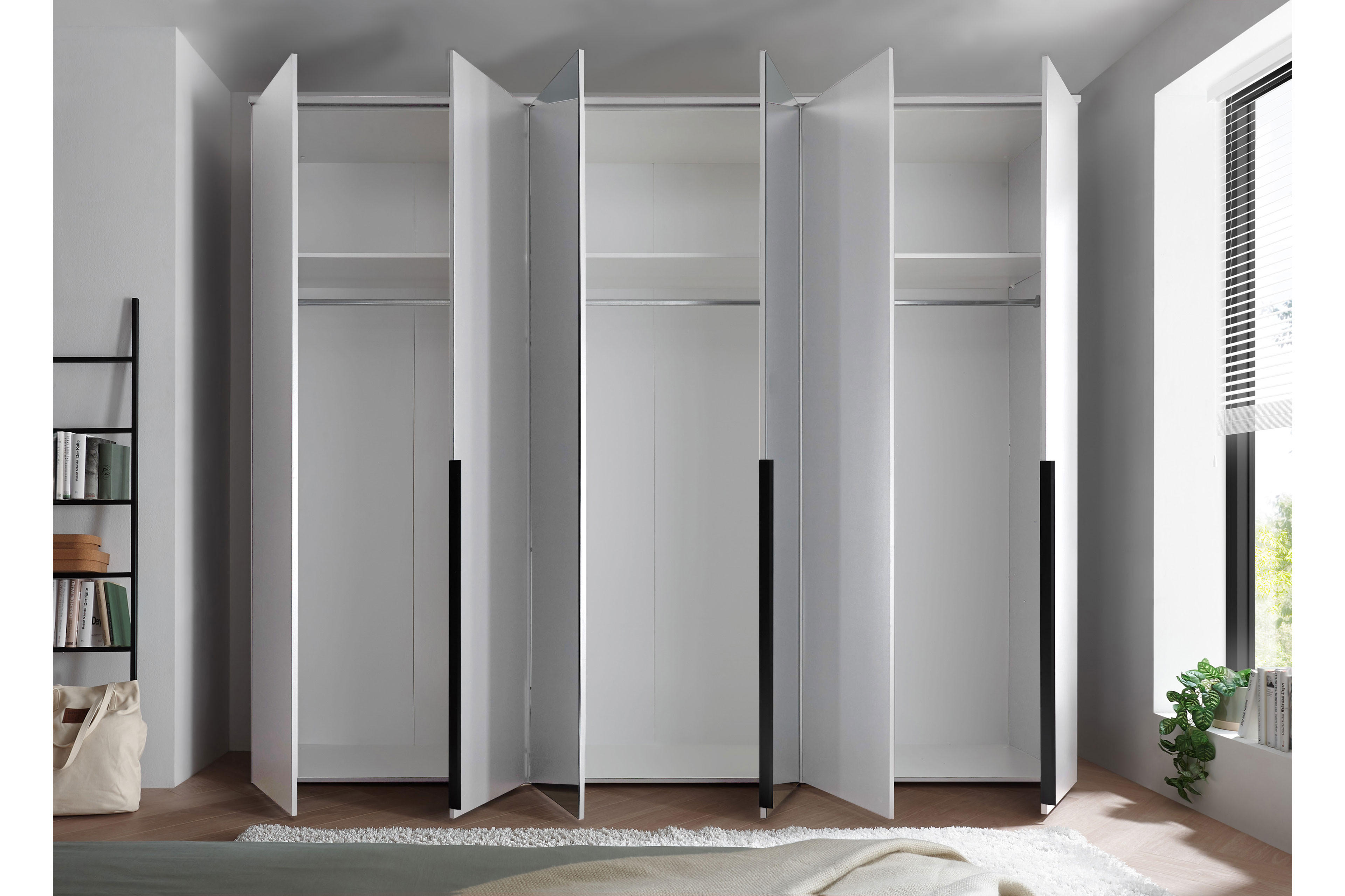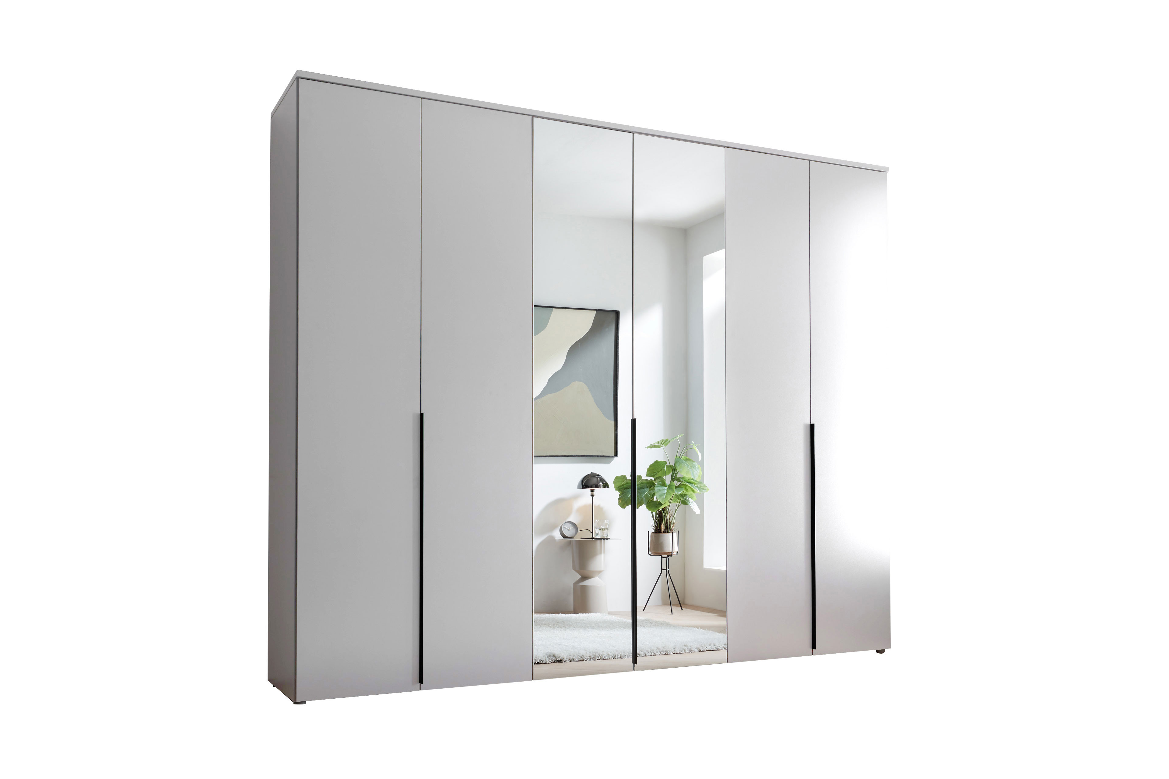 - Kleiderschrank: 6-türig (2 Mitteltüren mit Spiegel)