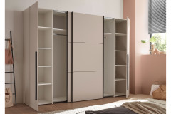 - Kleiderschrank: 2 Schwebetüren mittig, 2 Drehtüren außen