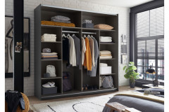 Kleiderschrank mit Schwebetüren von POL Power - Modell Melton - ca. 215 cm breit Durchdachtes Design - maximale Funktion auf minimalem Raum.