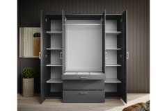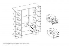 - Kleiderschrank: 4-türig, 3 Schubkästen (oberste Schublade mit 6-facher Inneneinteilung)