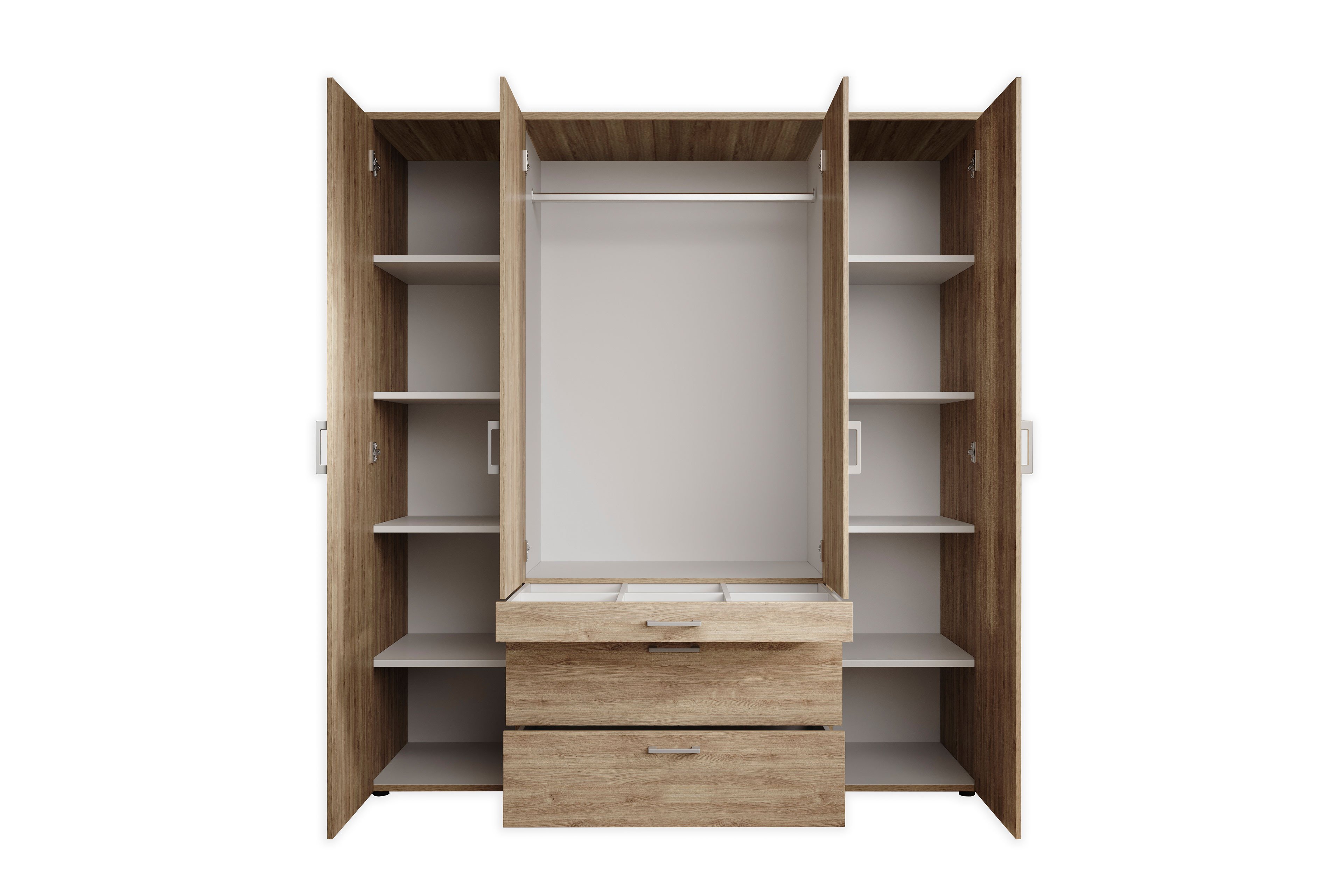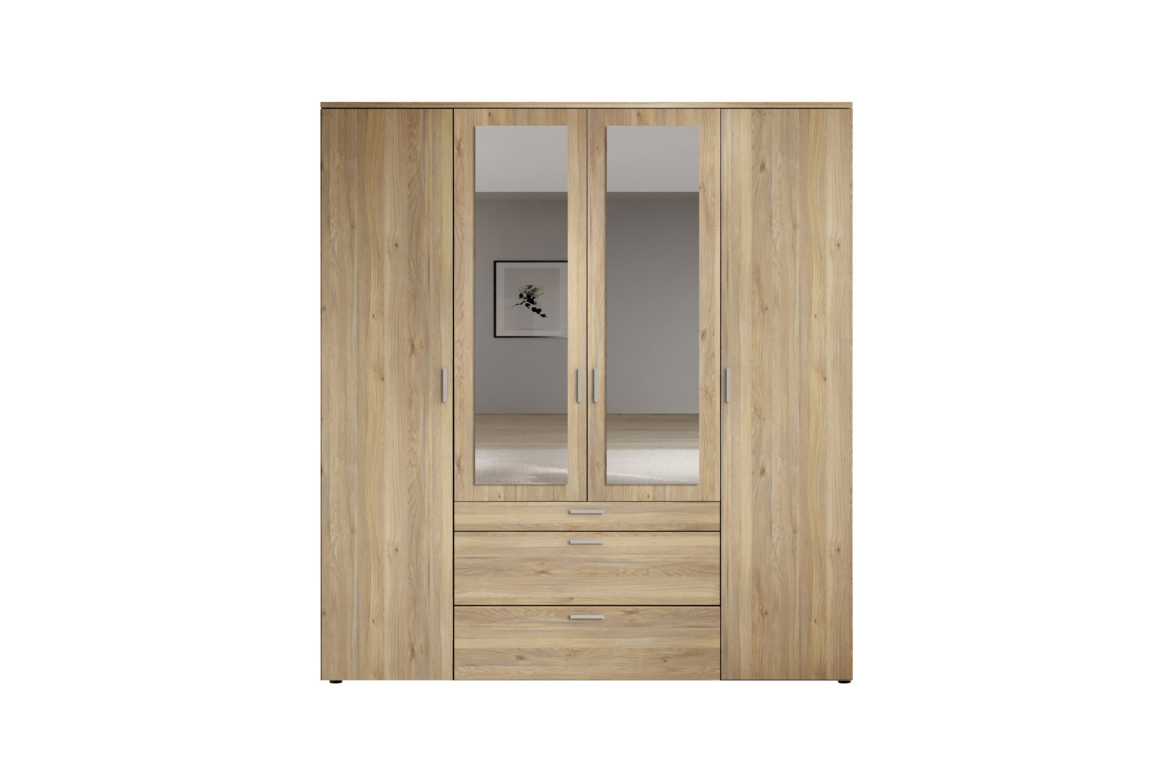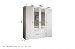 - Kleiderschrank: 4-türig, 3 Schubkästen (oberste Schublade mit 6-facher Inneneinteilung)