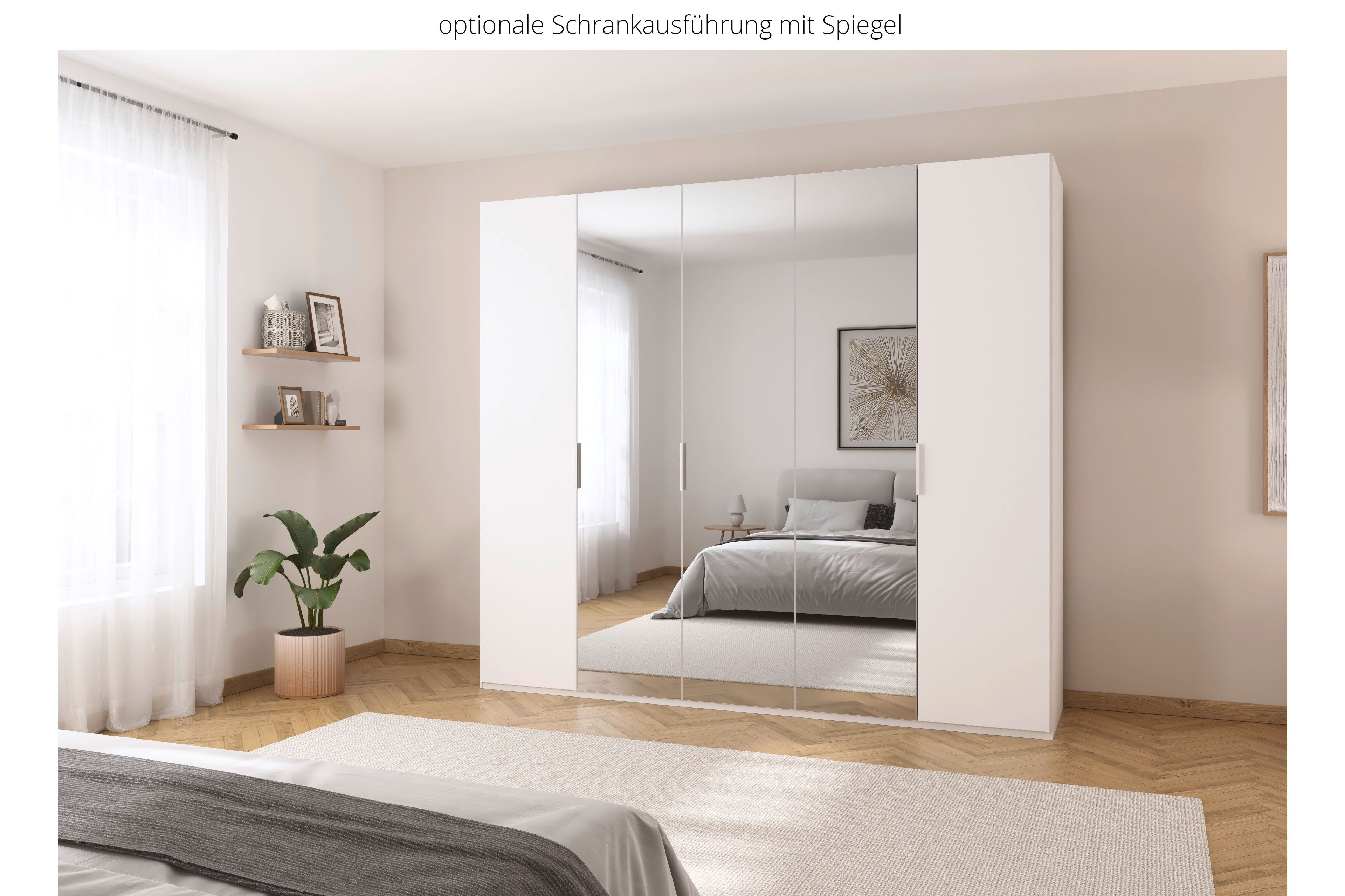 5-türiger Kleiderschrank von Rauch Orange - Modell Fifty - in 2 Höhen, auch mit Spiegel erhältlich Fifty - flexible Stauraummöglichkeiten.