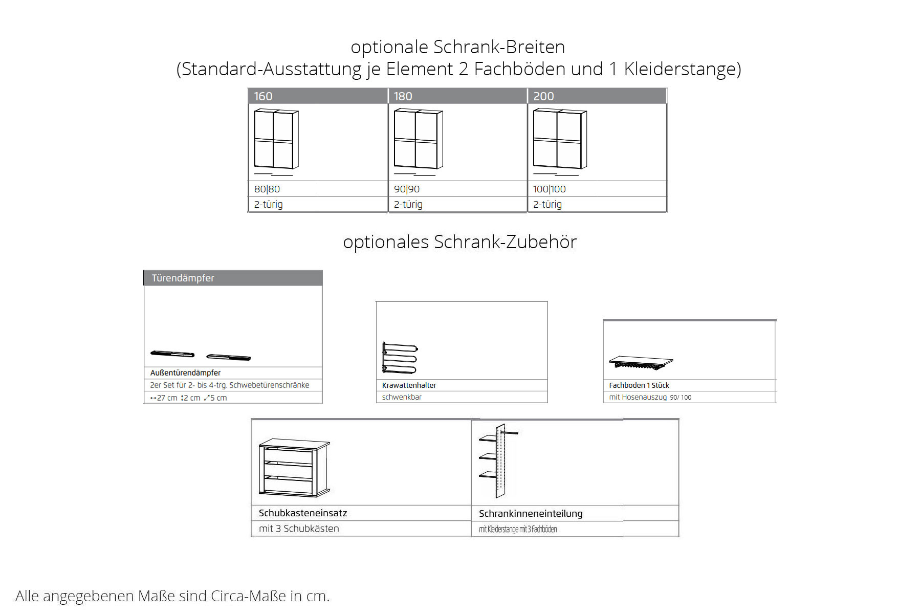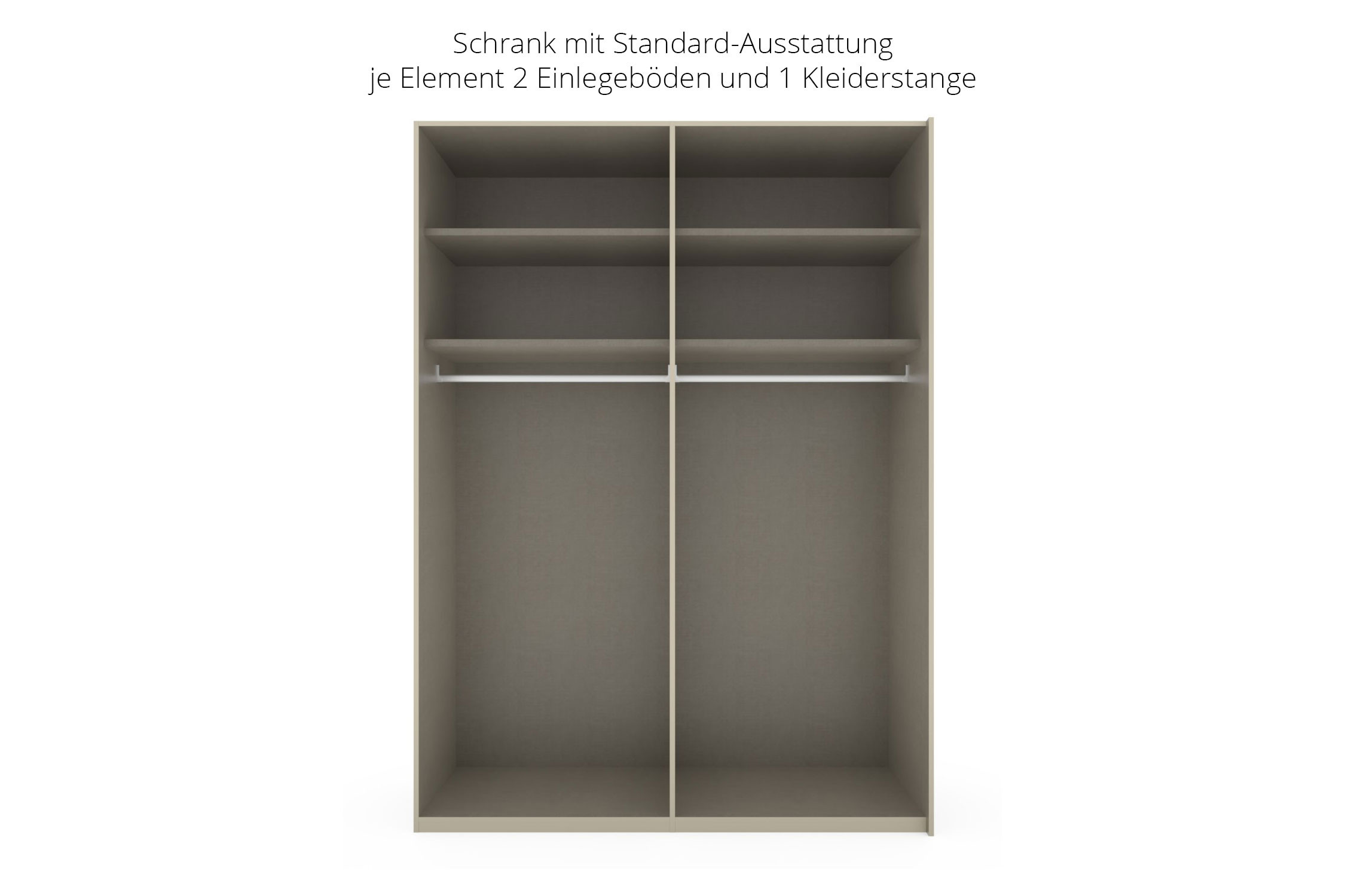 - Schrank: je Element 2 Fachböden und 1 Kleiderstange