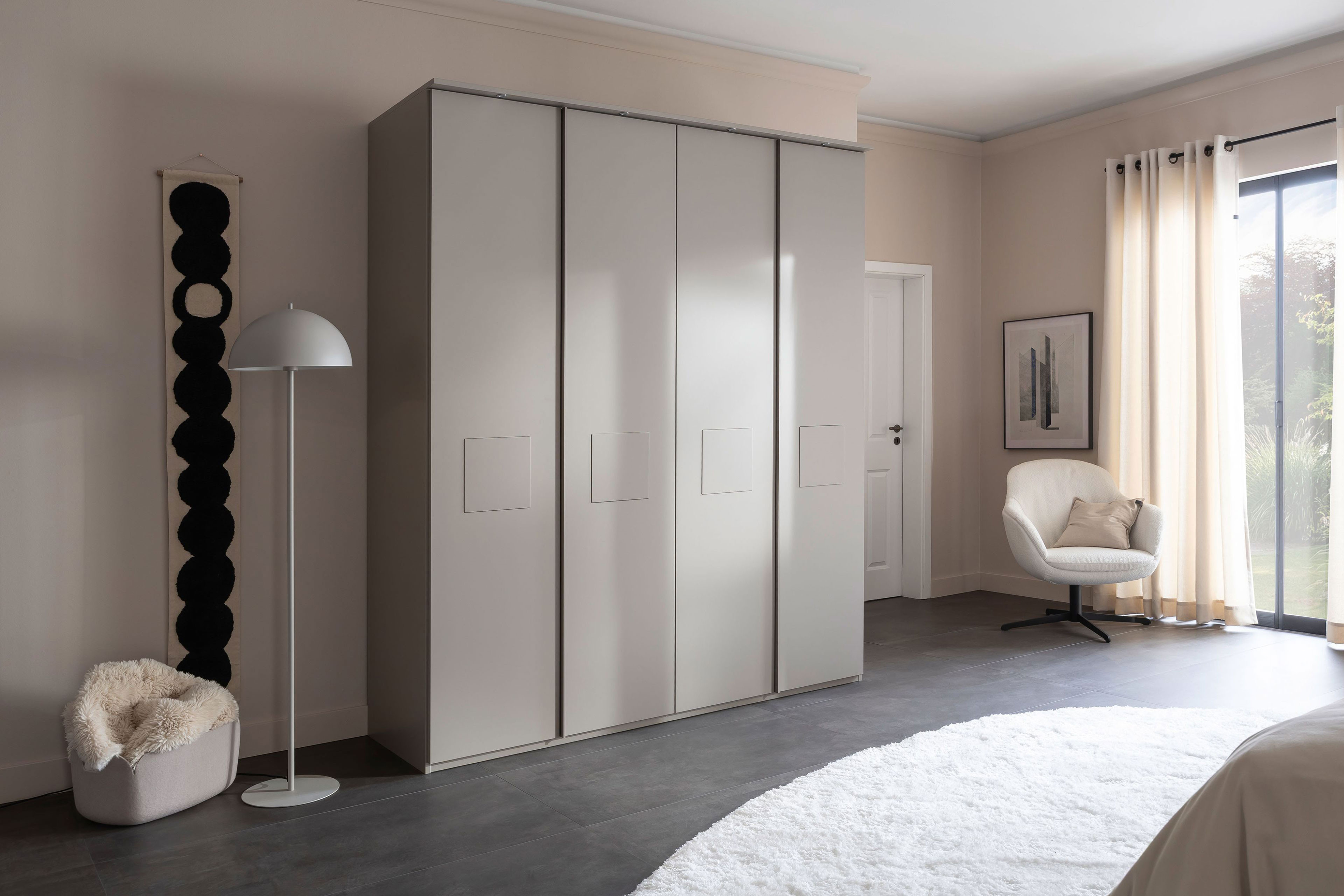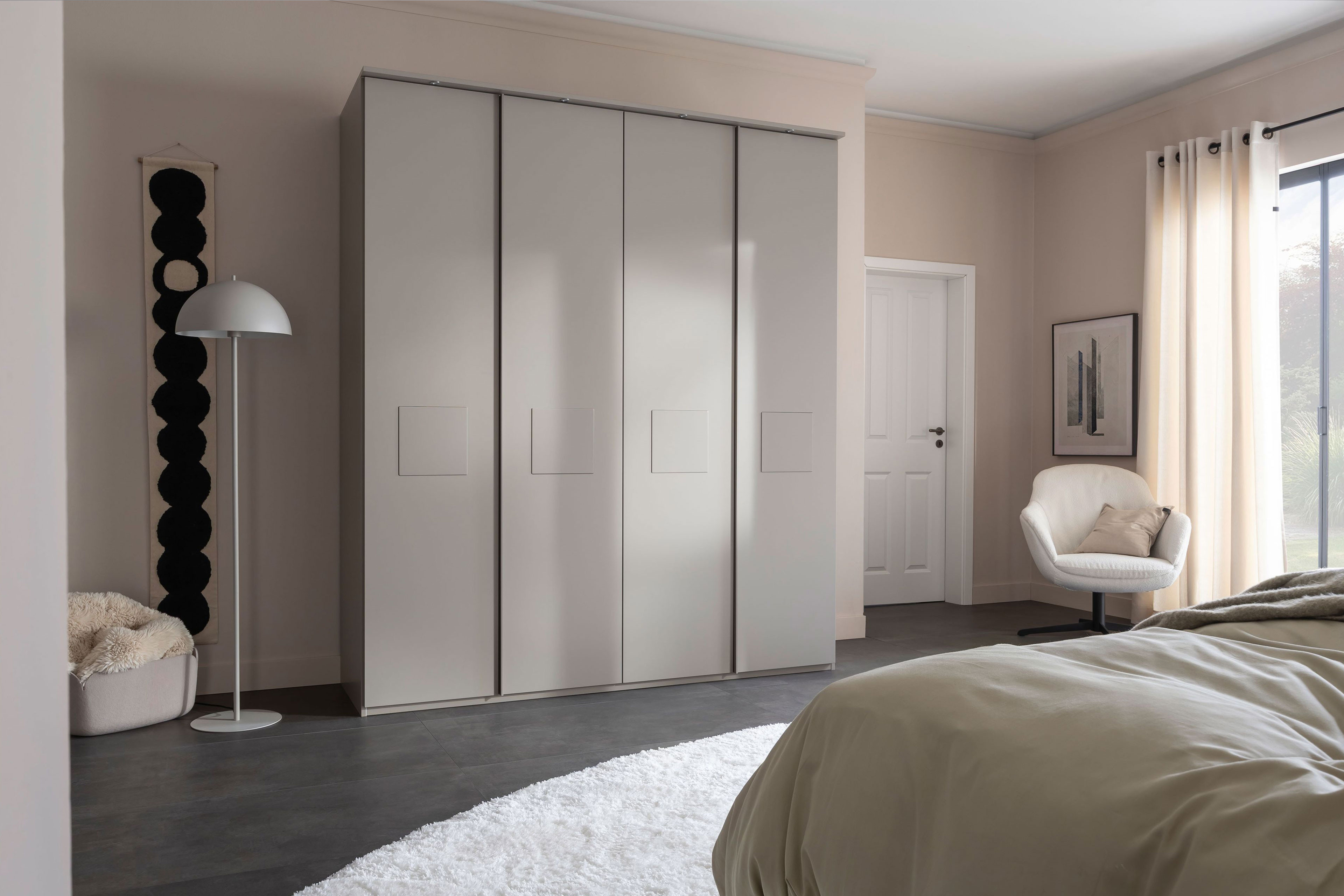 Schlafzimmerschrank von SCHÖNER WOHNEN - Modell Multiline - Türen mit Quadrateinsätzen Multiline - ein Schlafzimmer, das Geborgenheit schenkt.